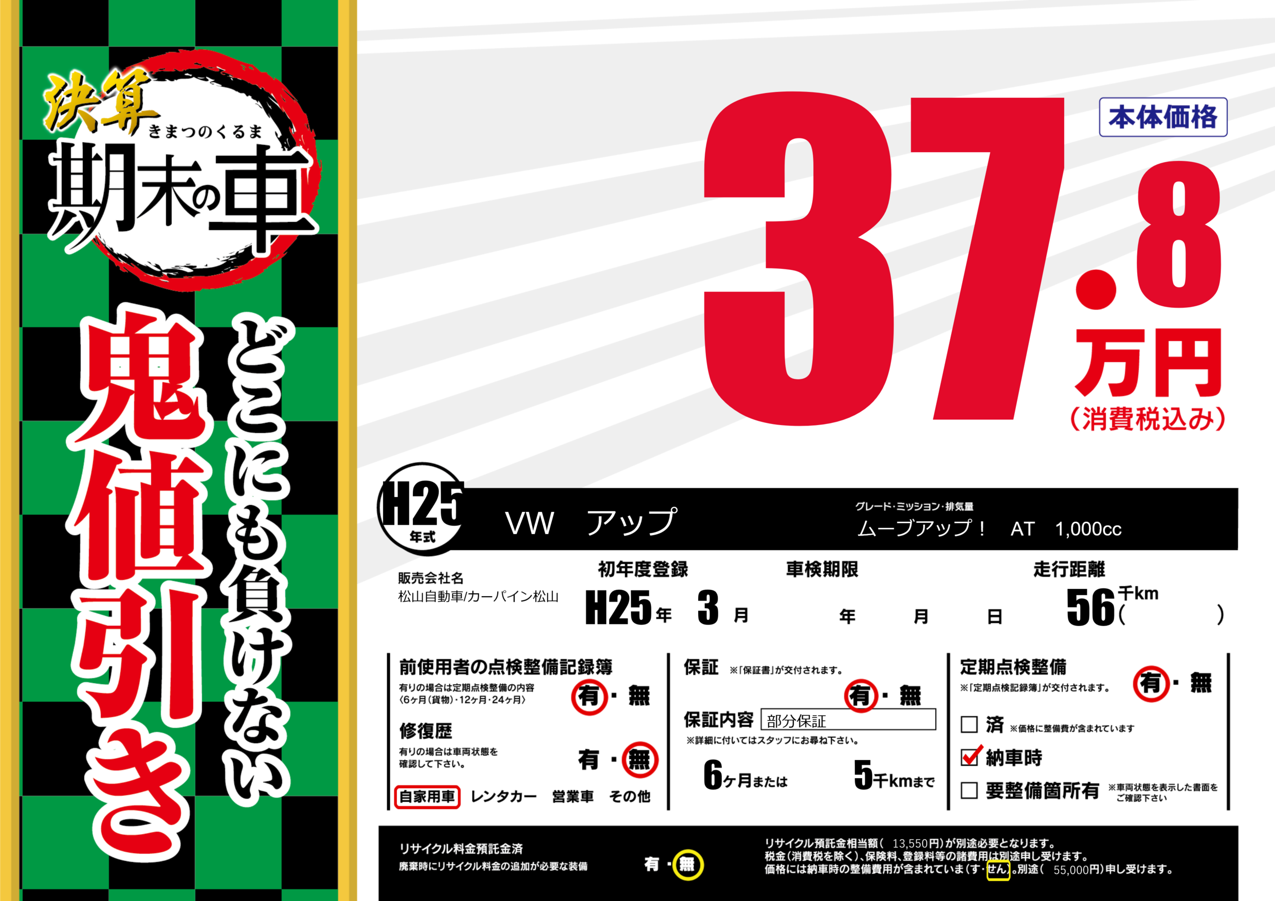 保証付き 保証内容(部分保証) 6ヶ月または(5)千kmまで |