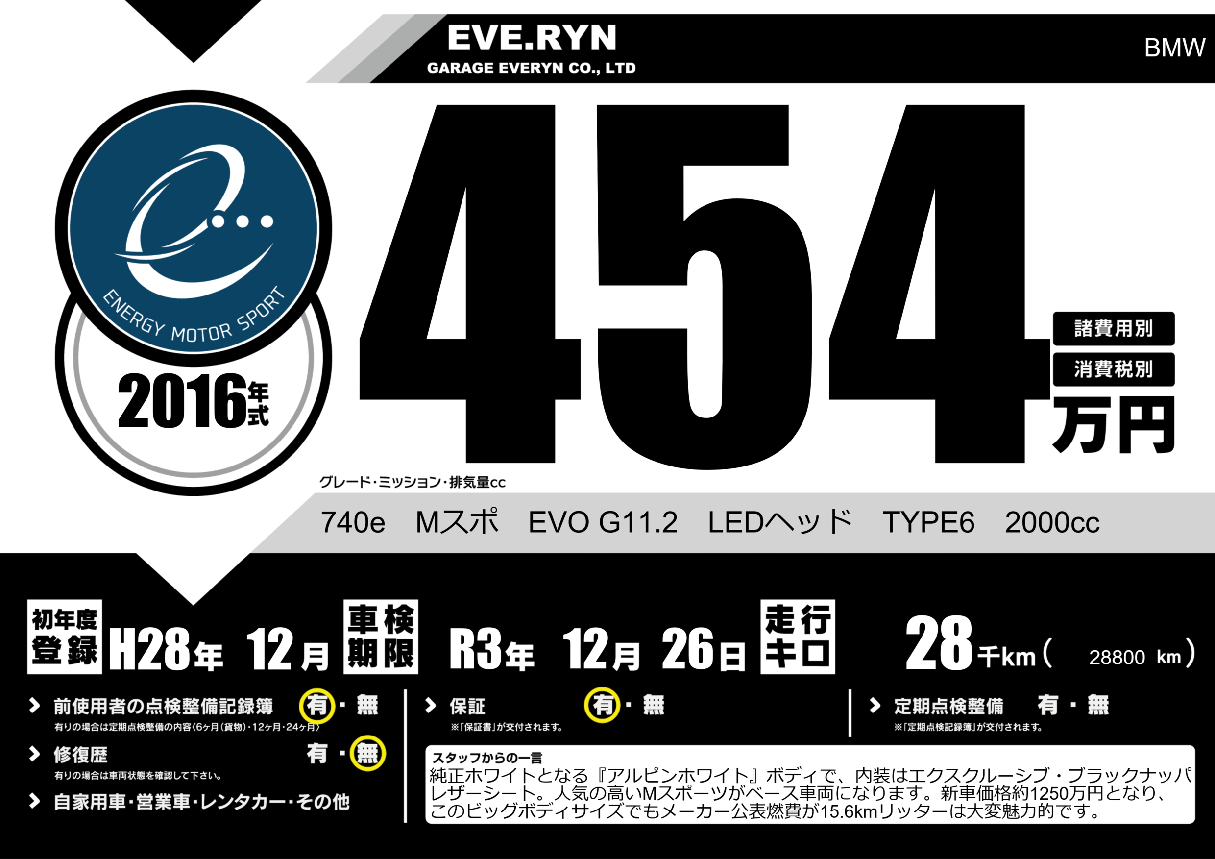 740e Mスポ EVO G11.2 LEDヘッド TYPE6 2000cc |