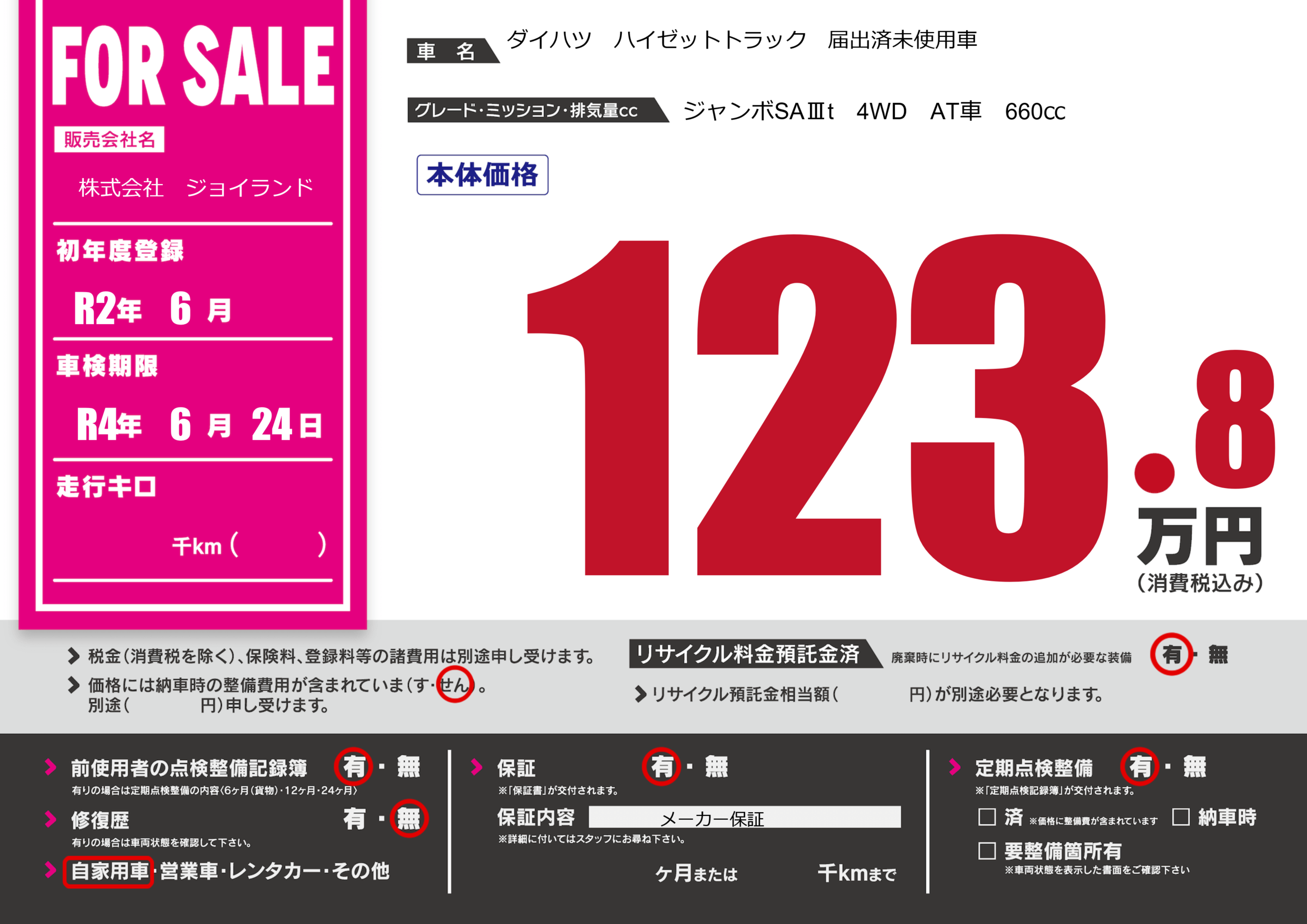 なし | 車検制限 | R4年6月24月 |