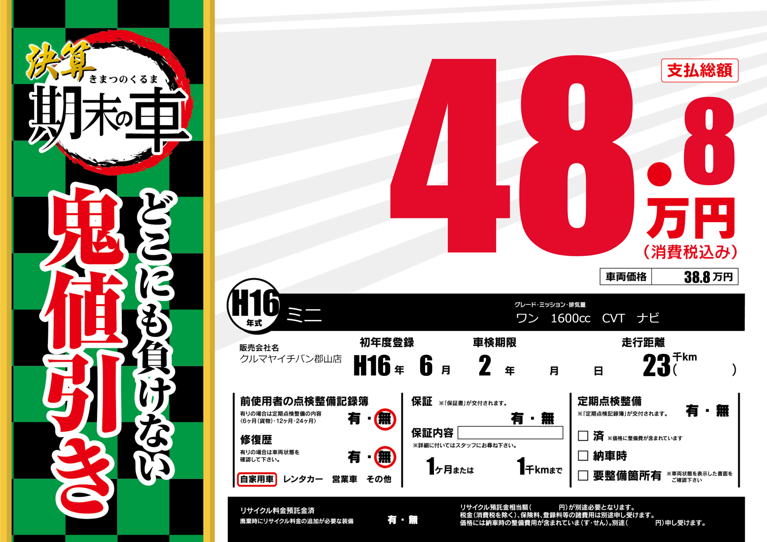 なし | 車検制限 | 2年---月---月 |