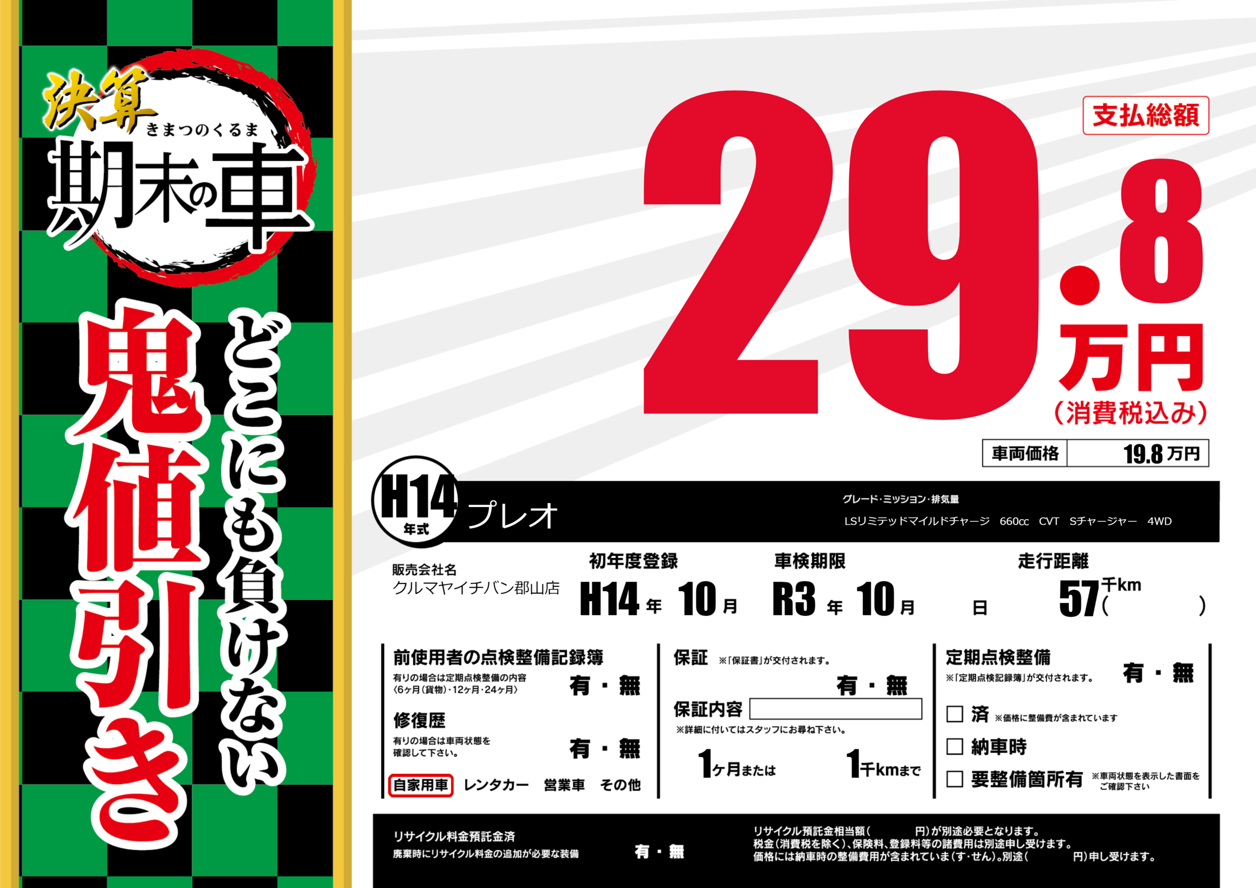 | 車名 | プレオ | グレード ミッション 排気量 |