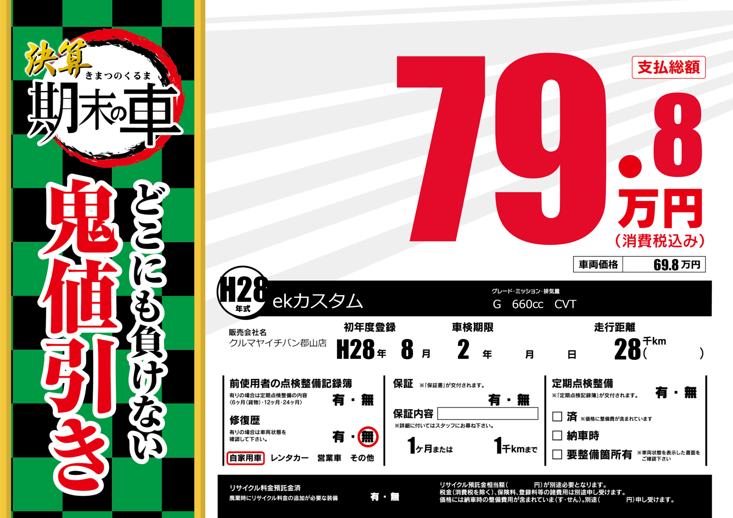 | 走行キロ | 2.8万km | 初年度登録 | H28年8月 |