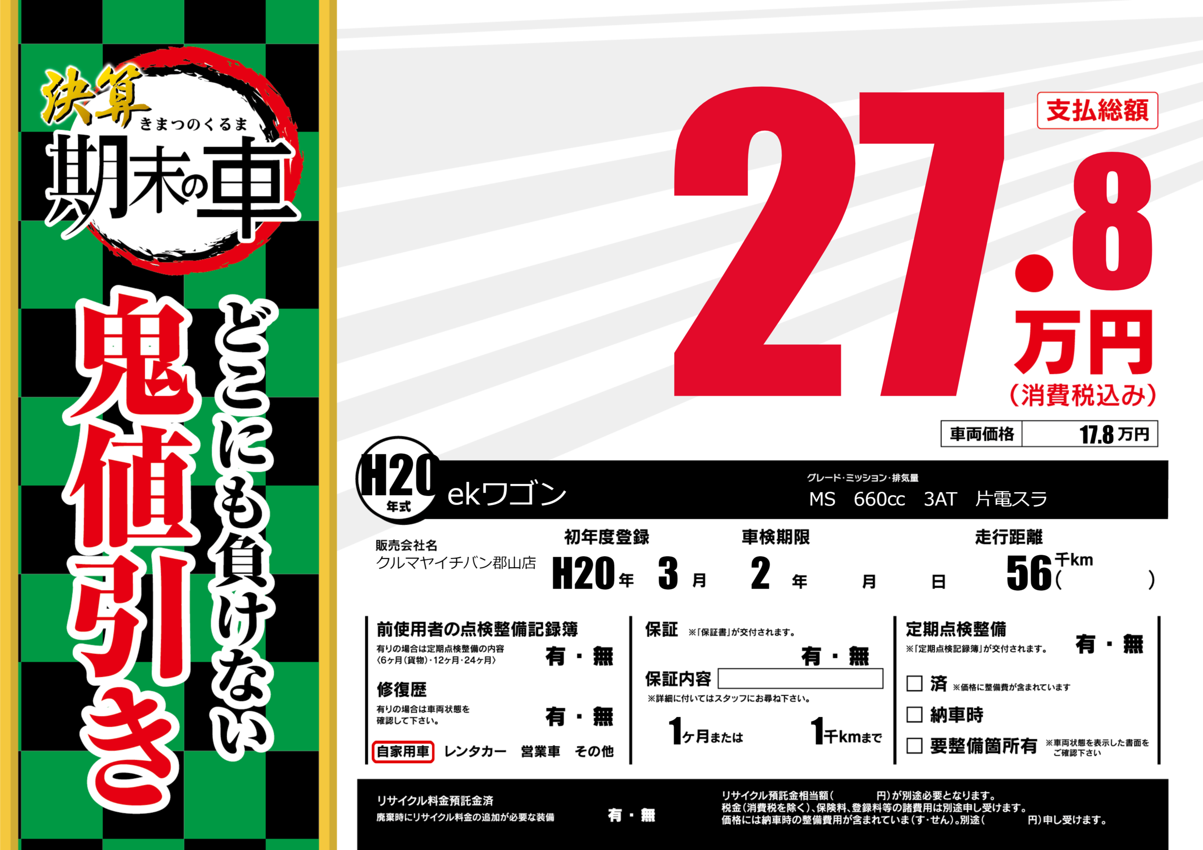 | 走行キロ | 5.6万km | 初年度登録 | H20年3月 |