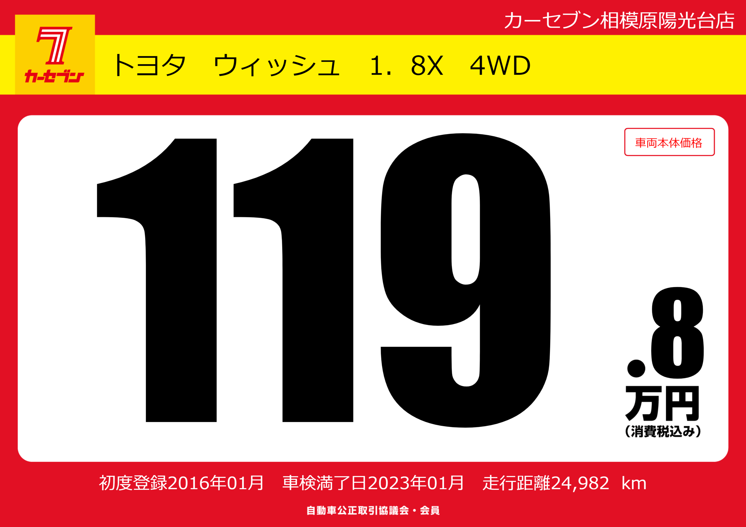 | 車名 | トヨタ ウィッシュ 1.8X 4WD | グレード ミッション 排気量 |