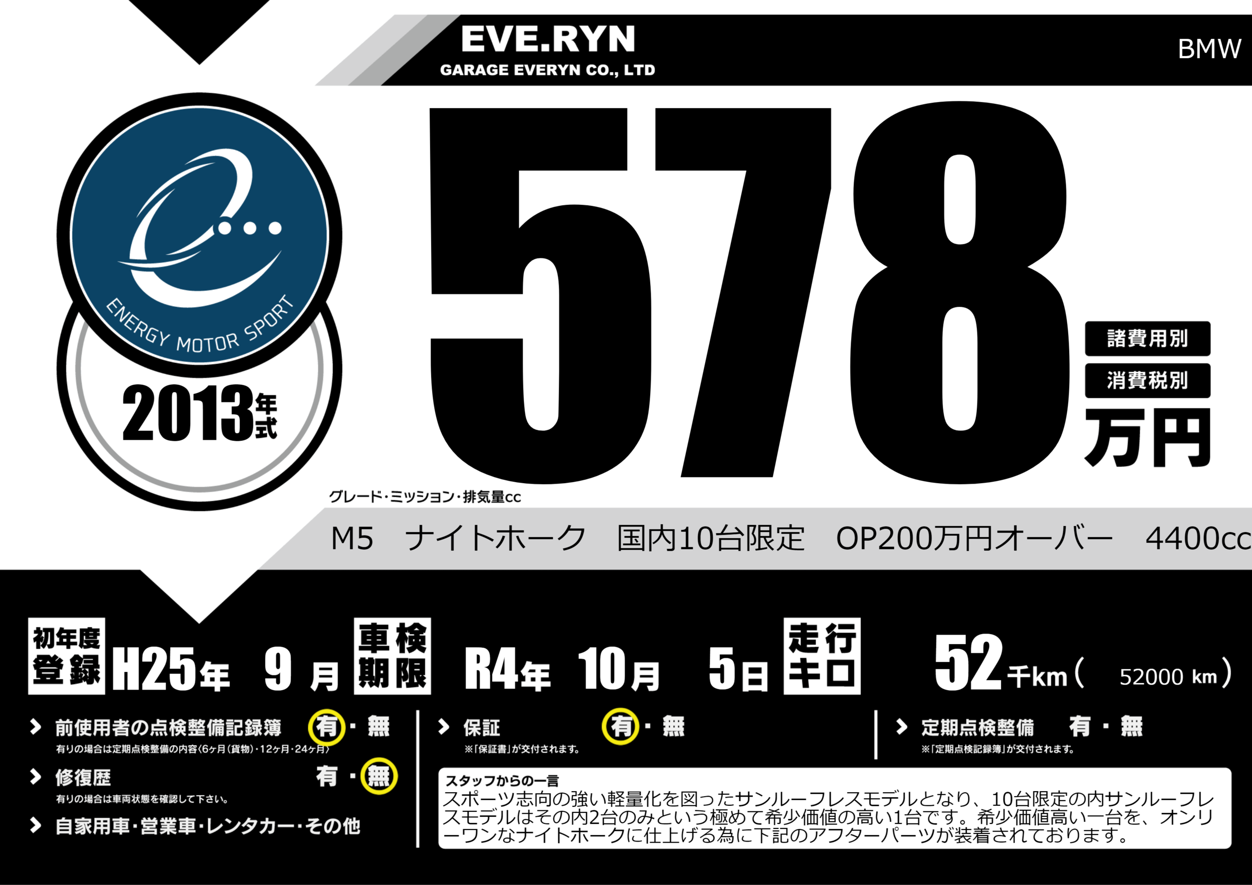 M5 ナイトホーク 国内10台限定 OP200万円オーバー 4400cc |