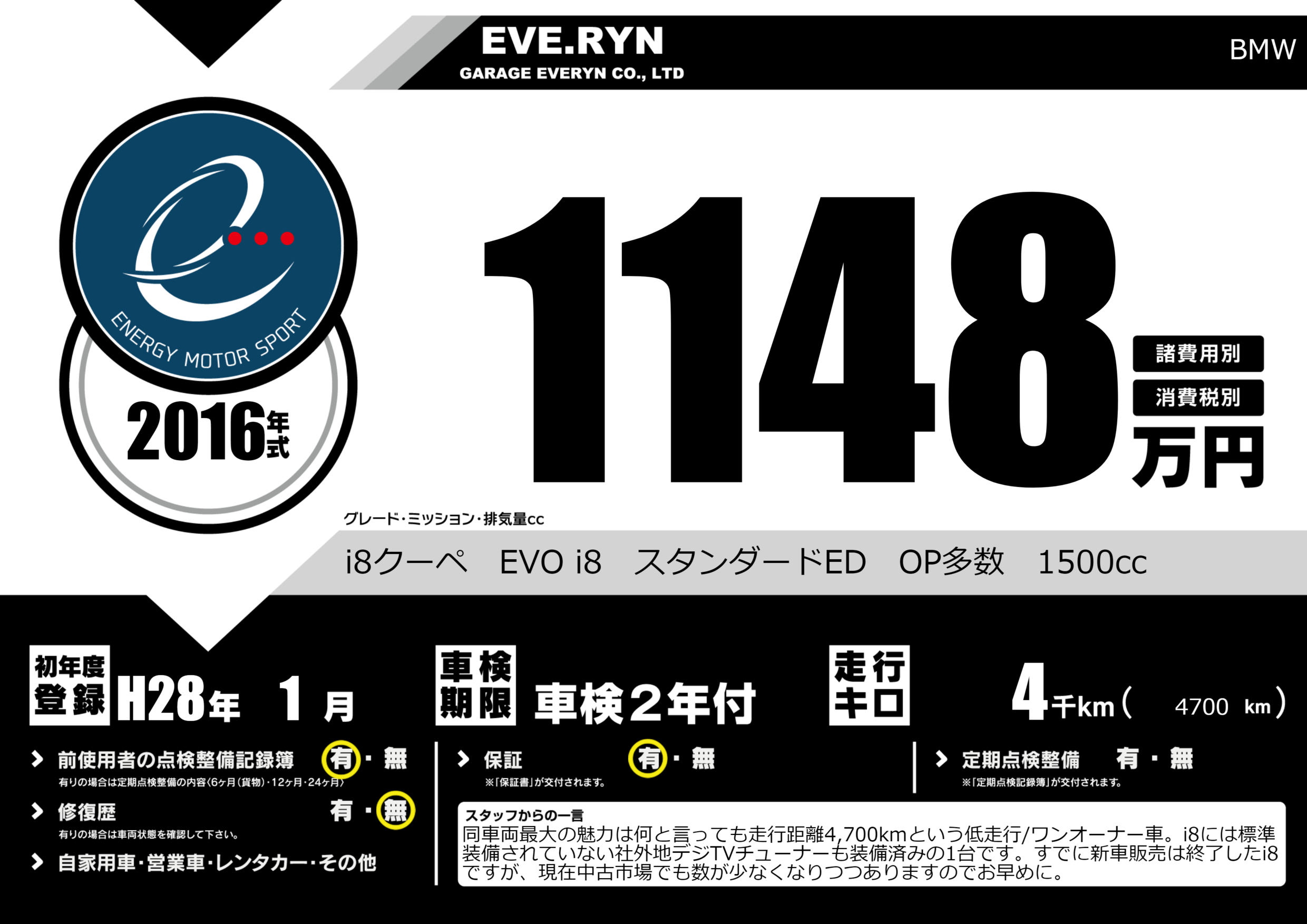 i8クーペ EVO i8 スタンダードED OP多数 1500cc |