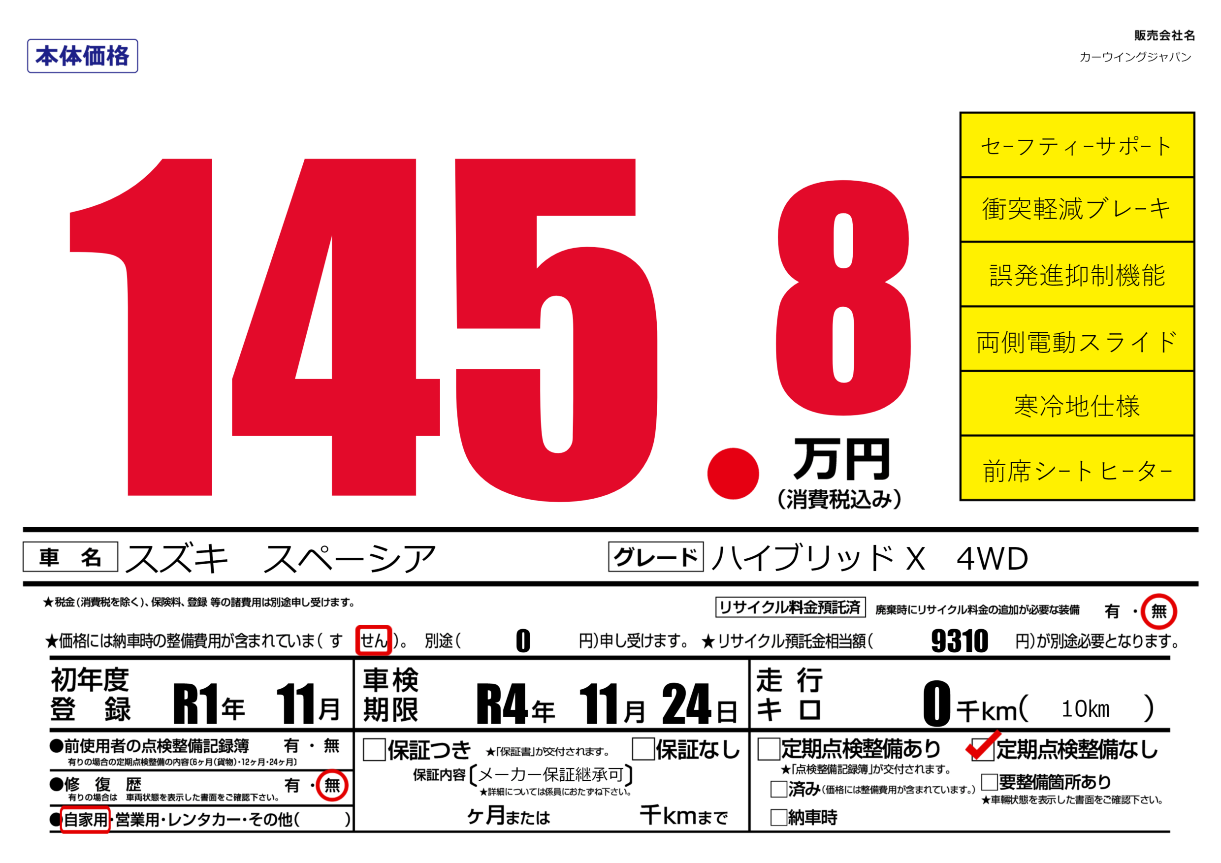 保証なし 保証内容(メーカー保証継承可) ---ヶ月または()千kmまで |