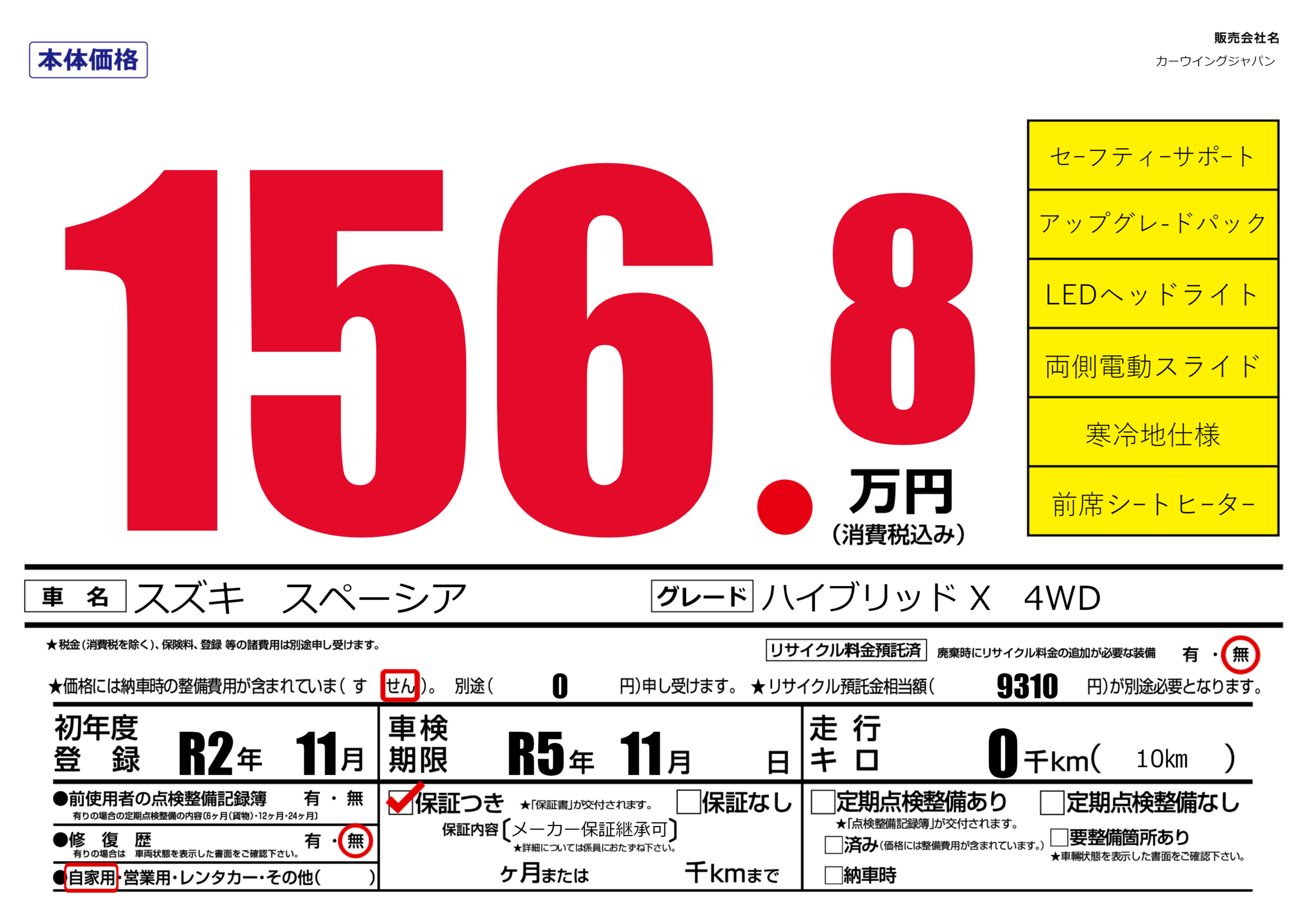 保証付き 保証内容(メーカー保証継承可) ---ヶ月または()千kmまで |