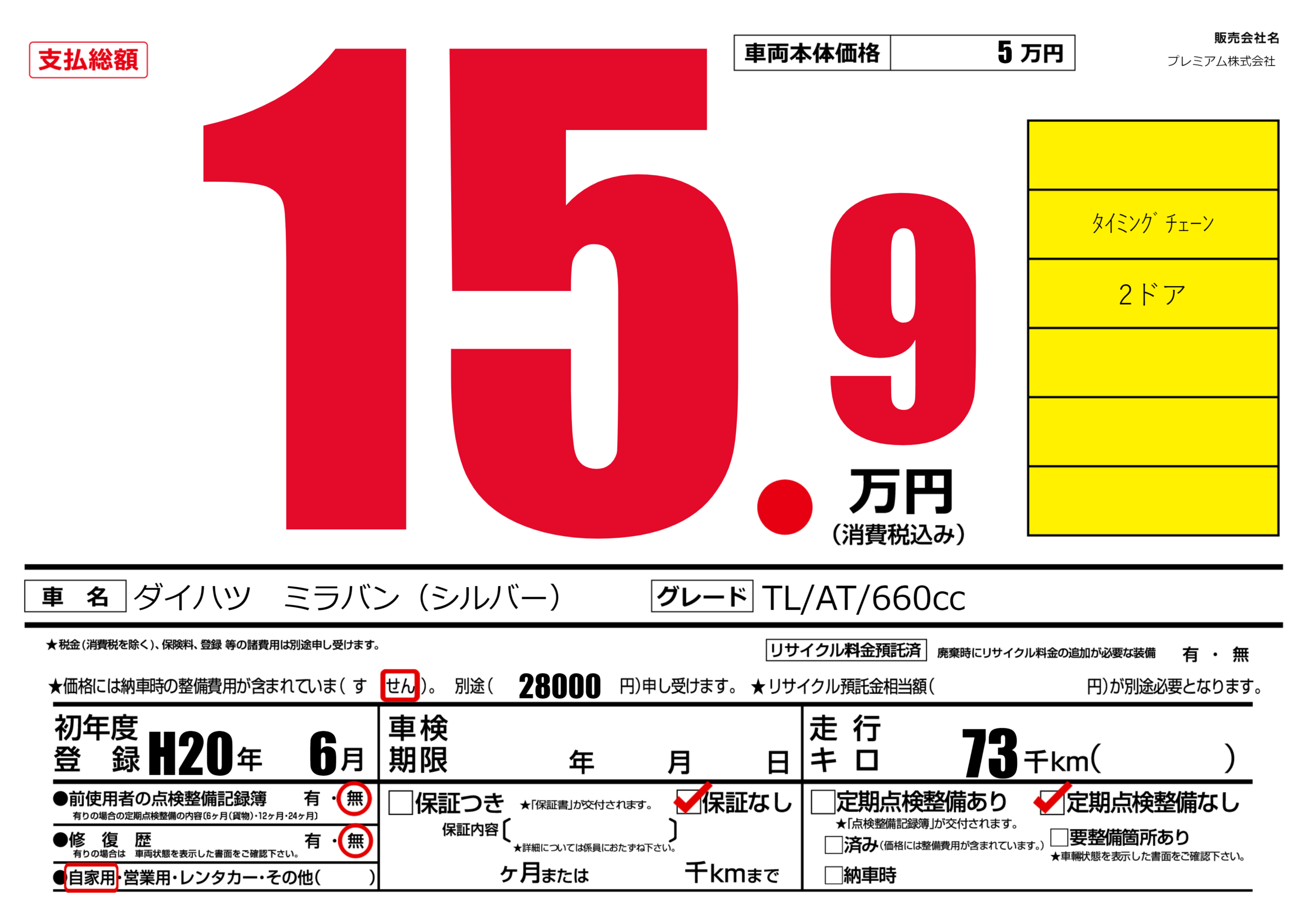 | 定期点検整備 | 定期点検整備なし | ||