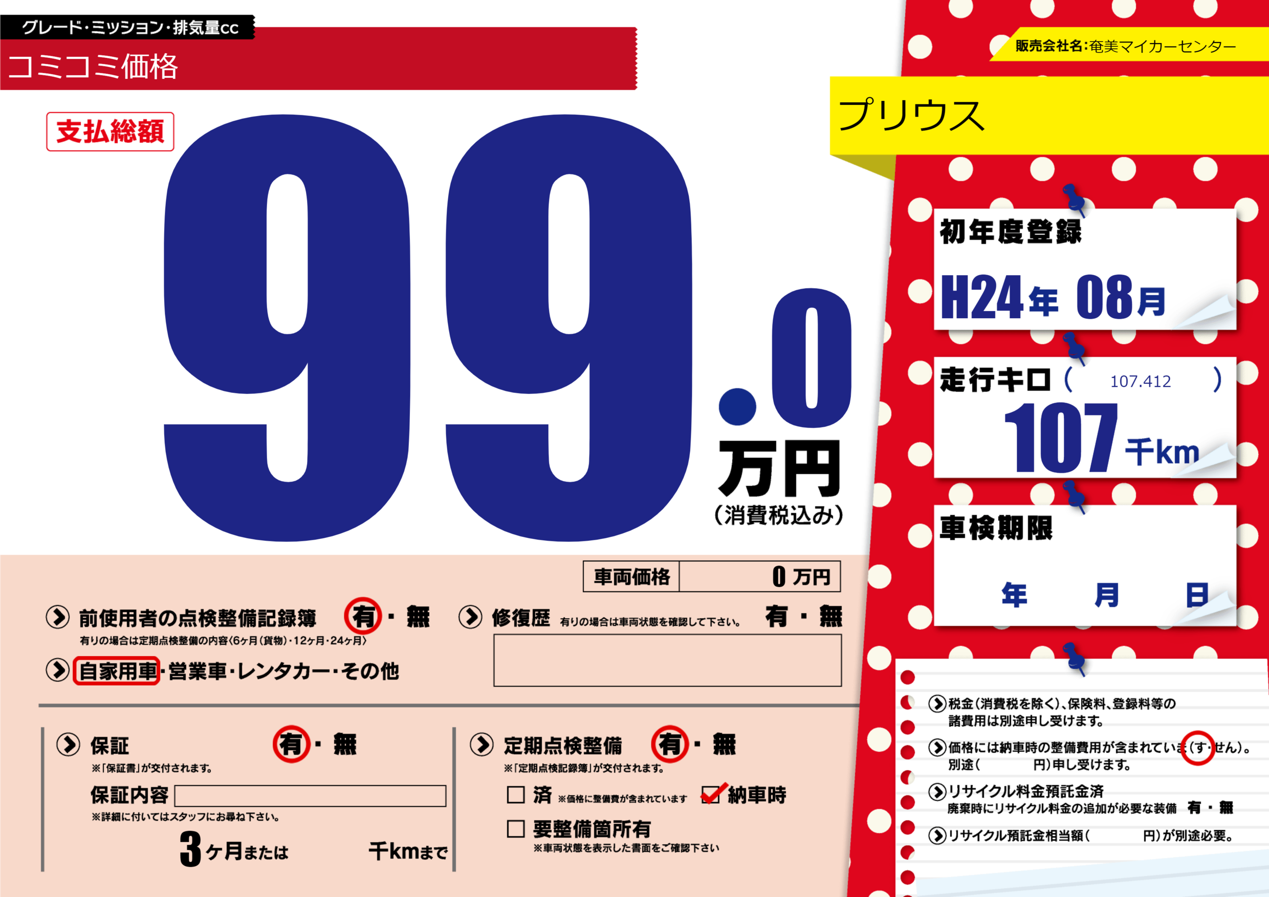 | 定期点検整備 | 定期点検整備あり 納車時あり | ||