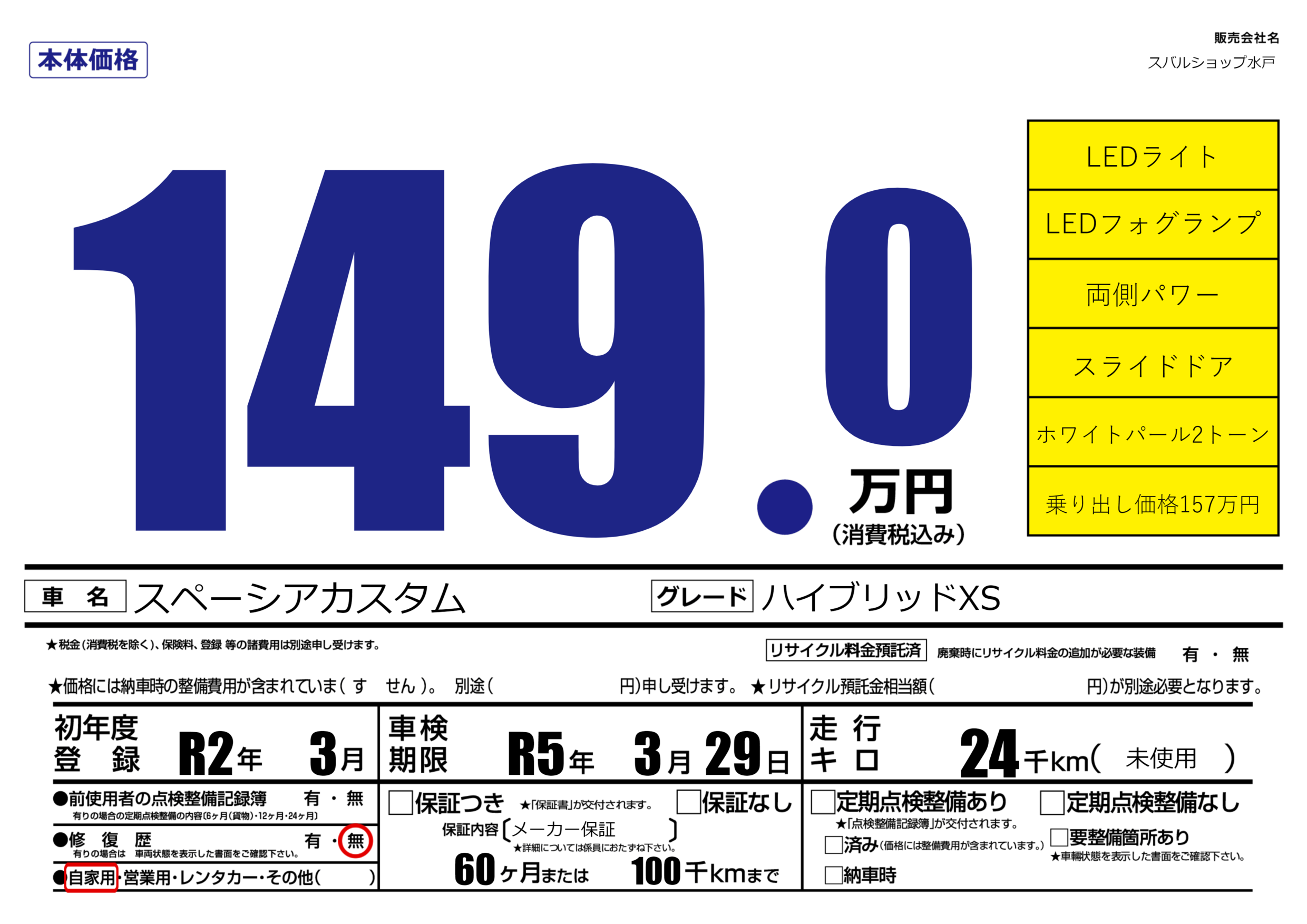 なし | 車検制限 | R5年3月29月 |