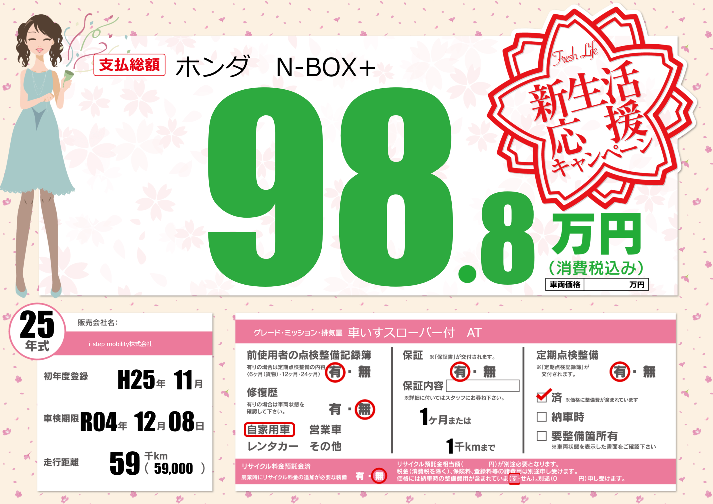 | 車名 | ホンダ N-BOX+ | グレード ミッション 排気量 |