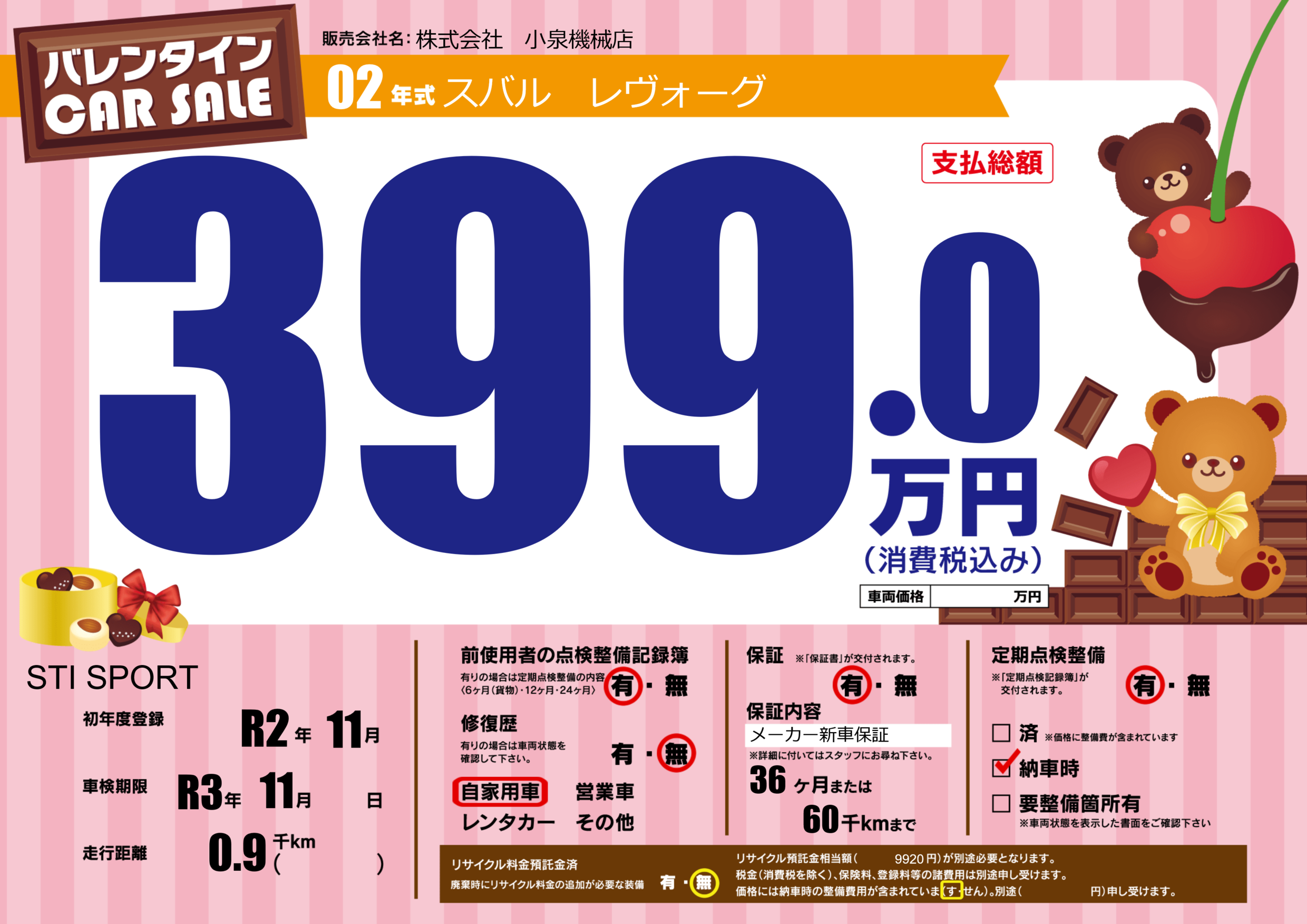 | 定期点検整備 | 定期点検整備あり 納車時あり | ||