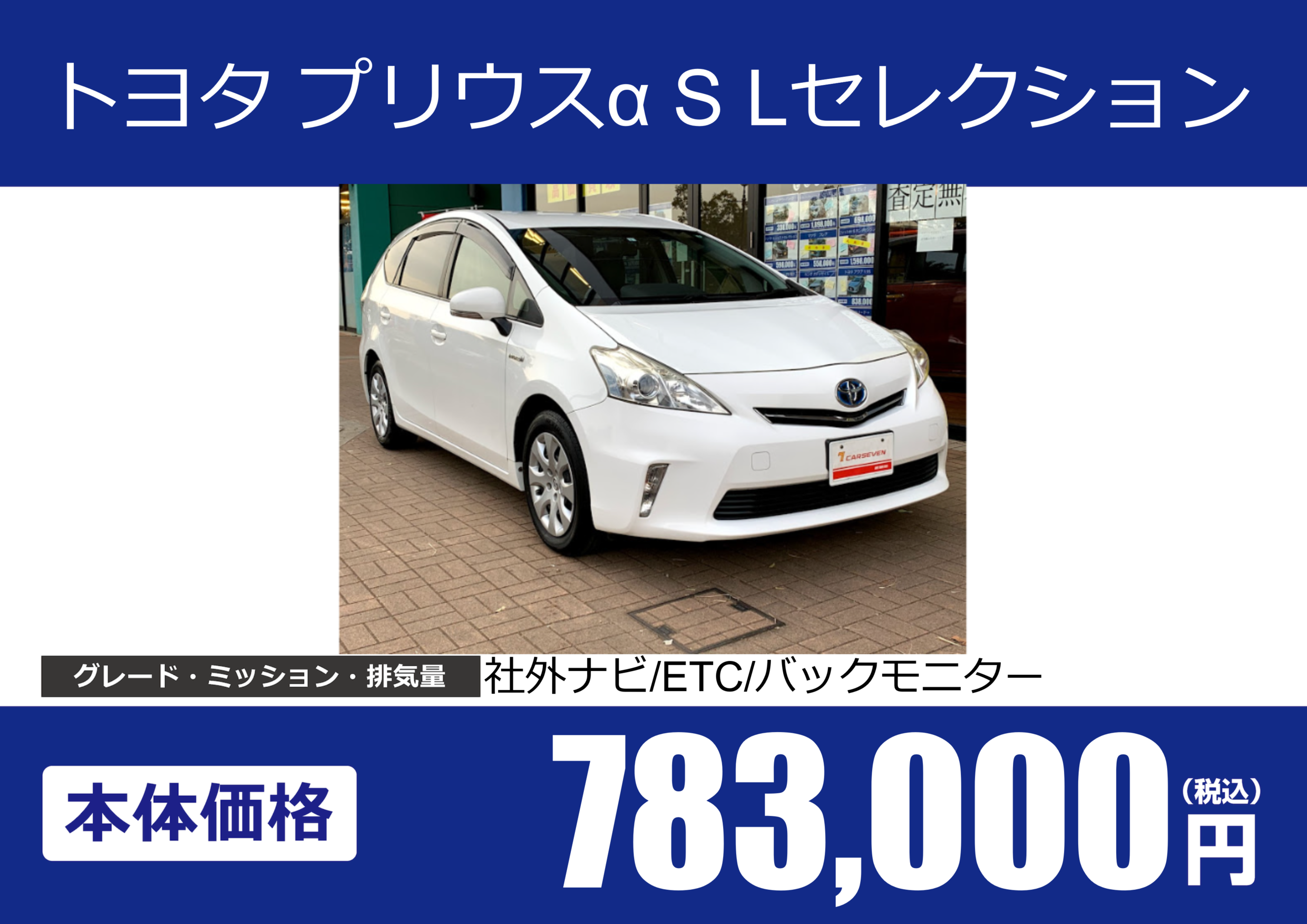 | 車名 | トヨタ プリウスα S Lセレクション | グレード ミッション 排気量 |