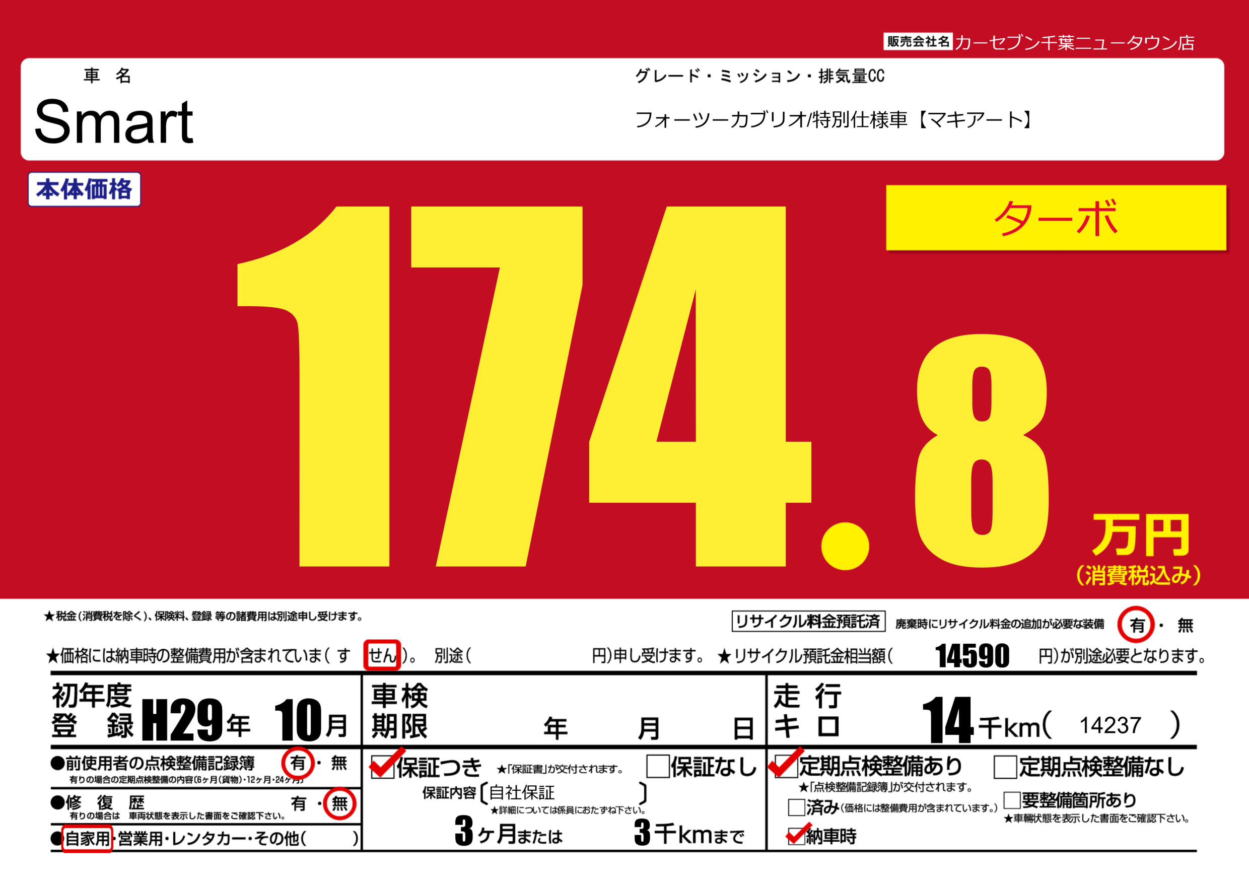 保証付き 保証内容(自社保証) 3ヶ月または3千km |