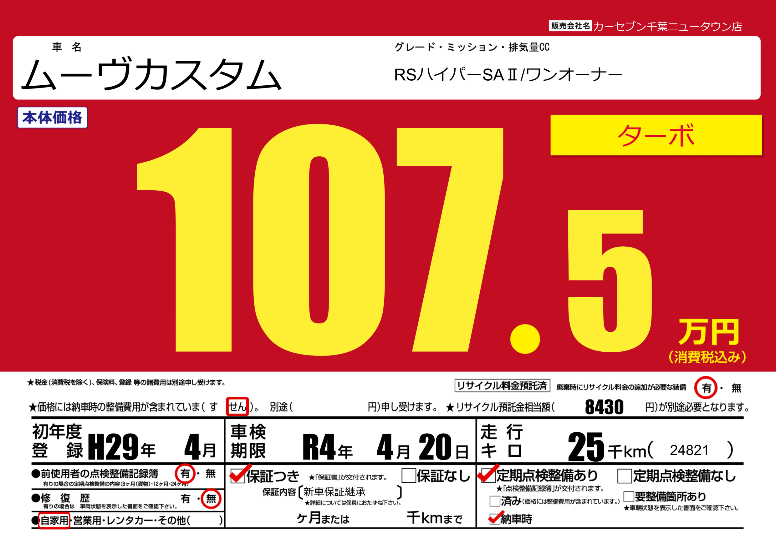 | 車名 | ムーヴカスタム | グレード ミッション 排気量 |