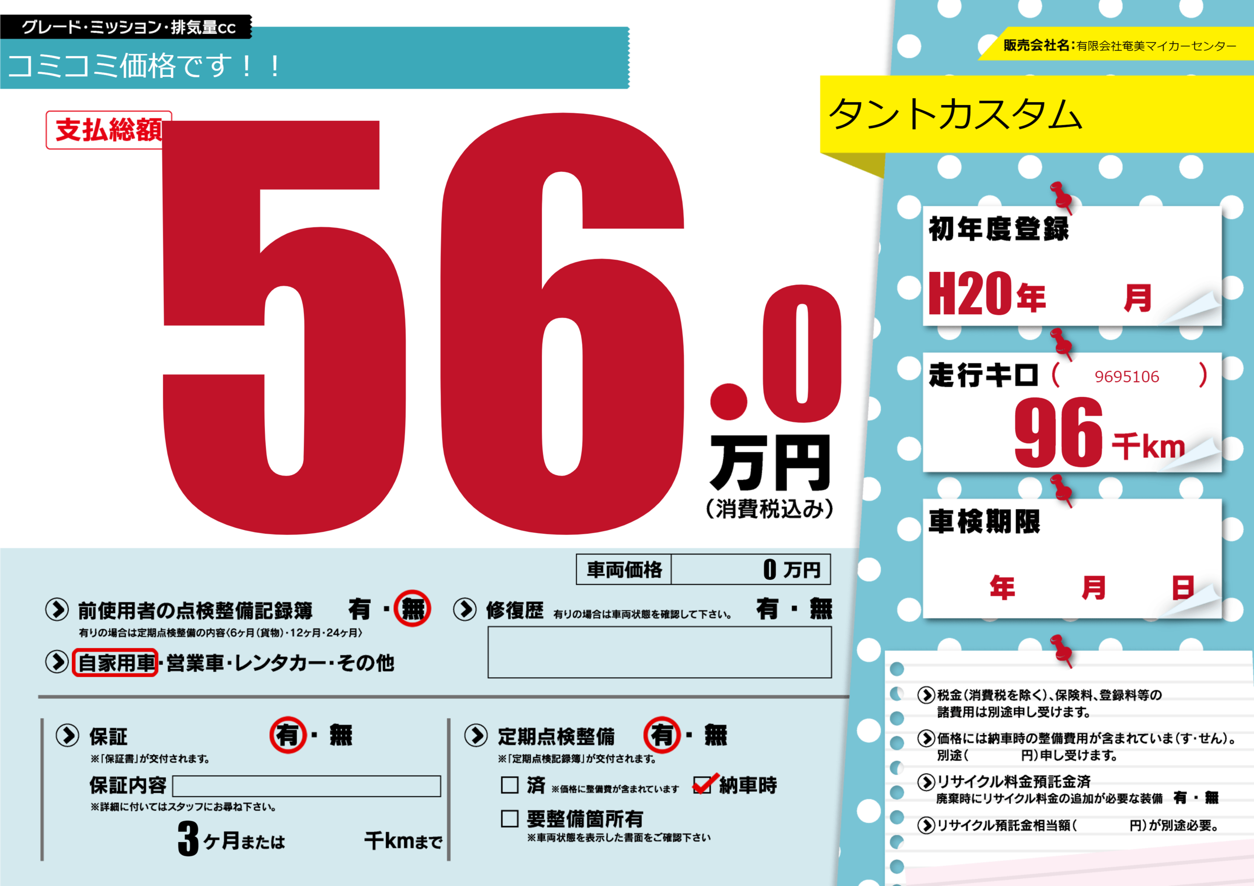 | 車名 | タントカスタム | グレード ミッション 排気量 |