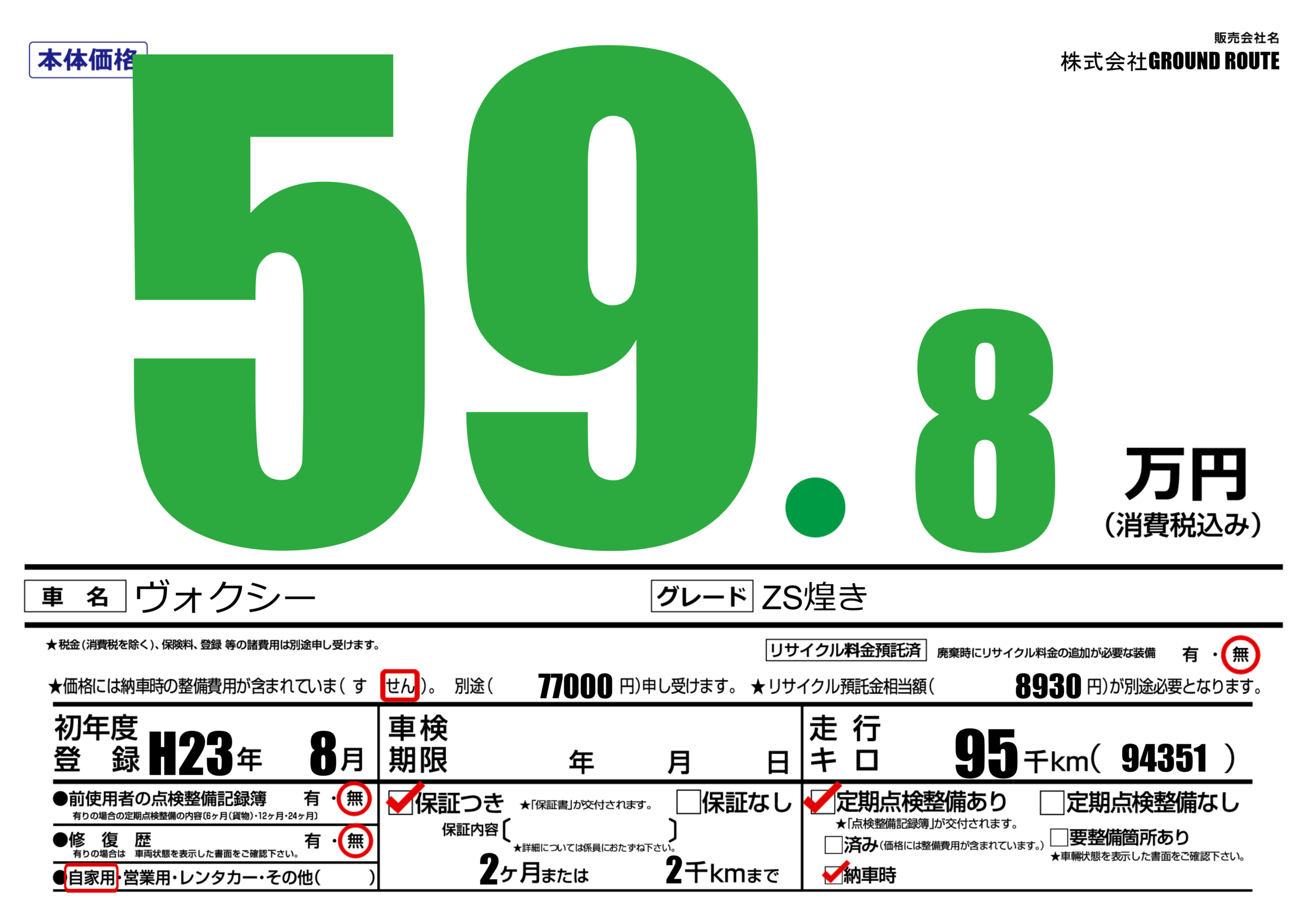 | 車検制限 | - 年 - 月 - 日 | ||