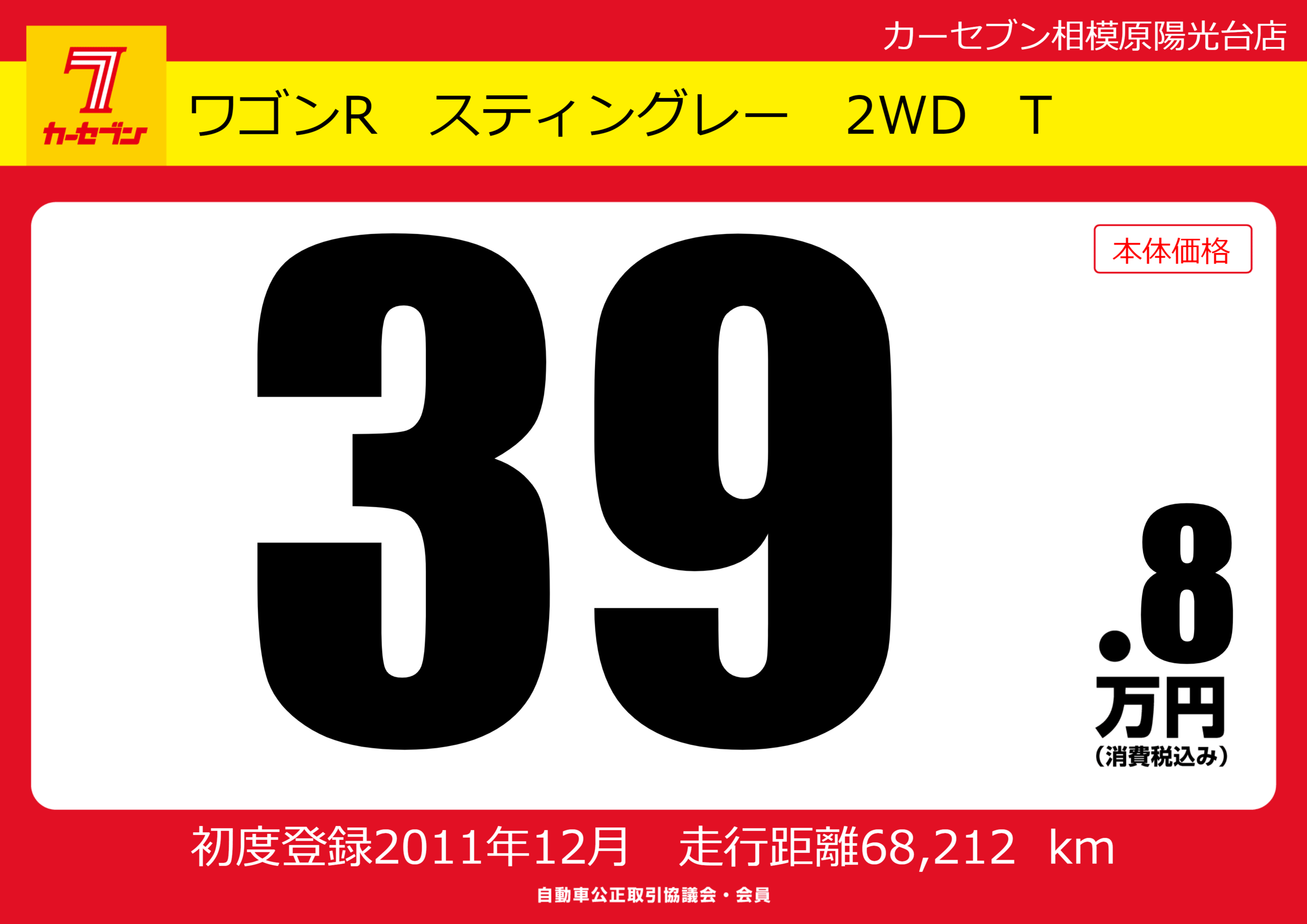 | 車名 | ワゴンR スティングレー 2WD T | グレード ミッション 排気量 |