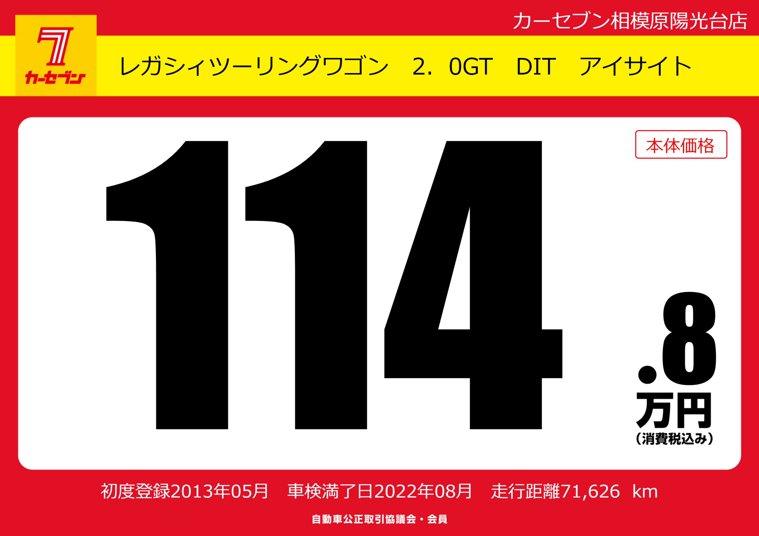 | 車名 | レガシィツーリングワゴン 2.0GT DIT アイサイト | グレード ミッション 排気量 |