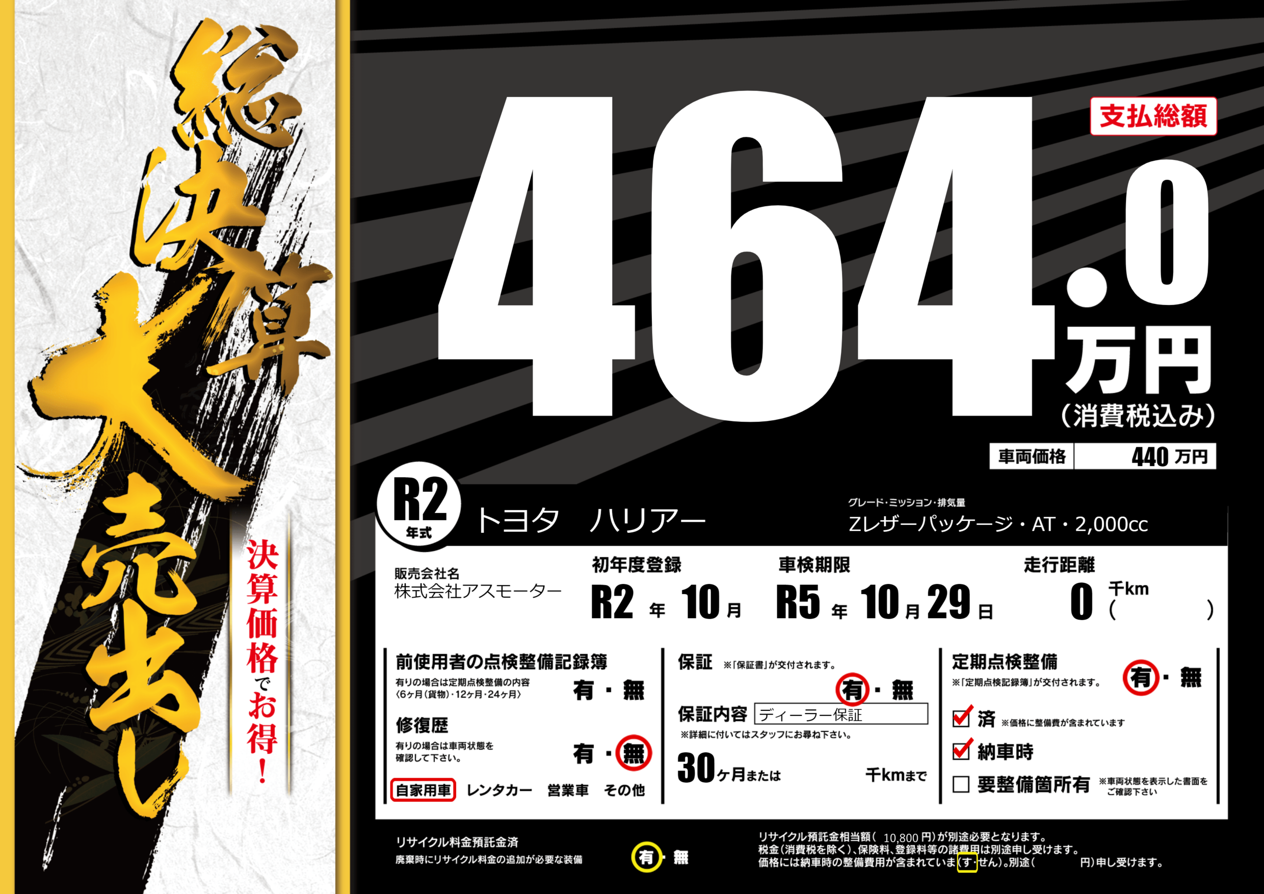 | 走行キロ | - | 初年度登録 | R2年10月 |