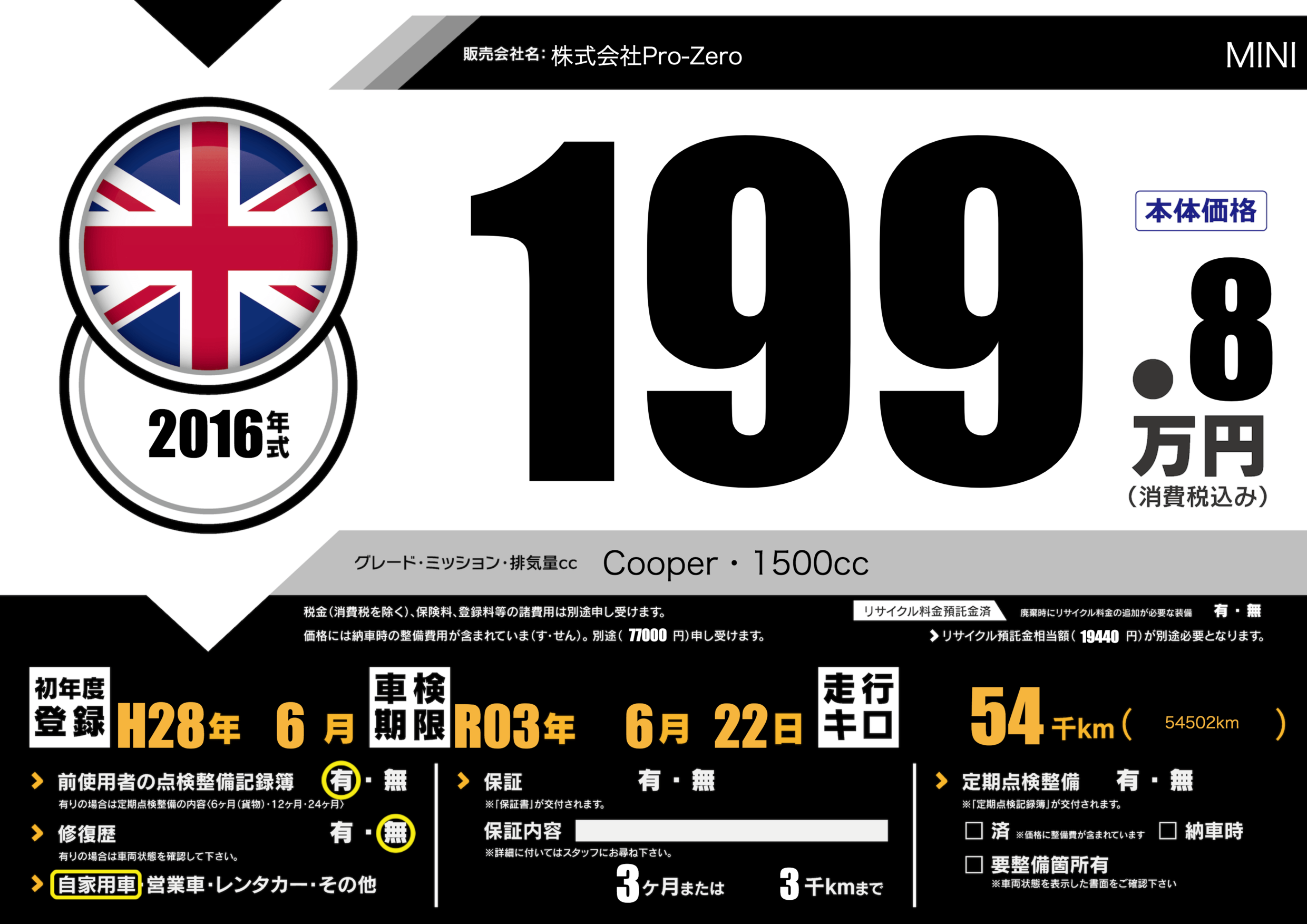 | 走行キロ | 5.4万km | 初年度登録 | H28年6月 |