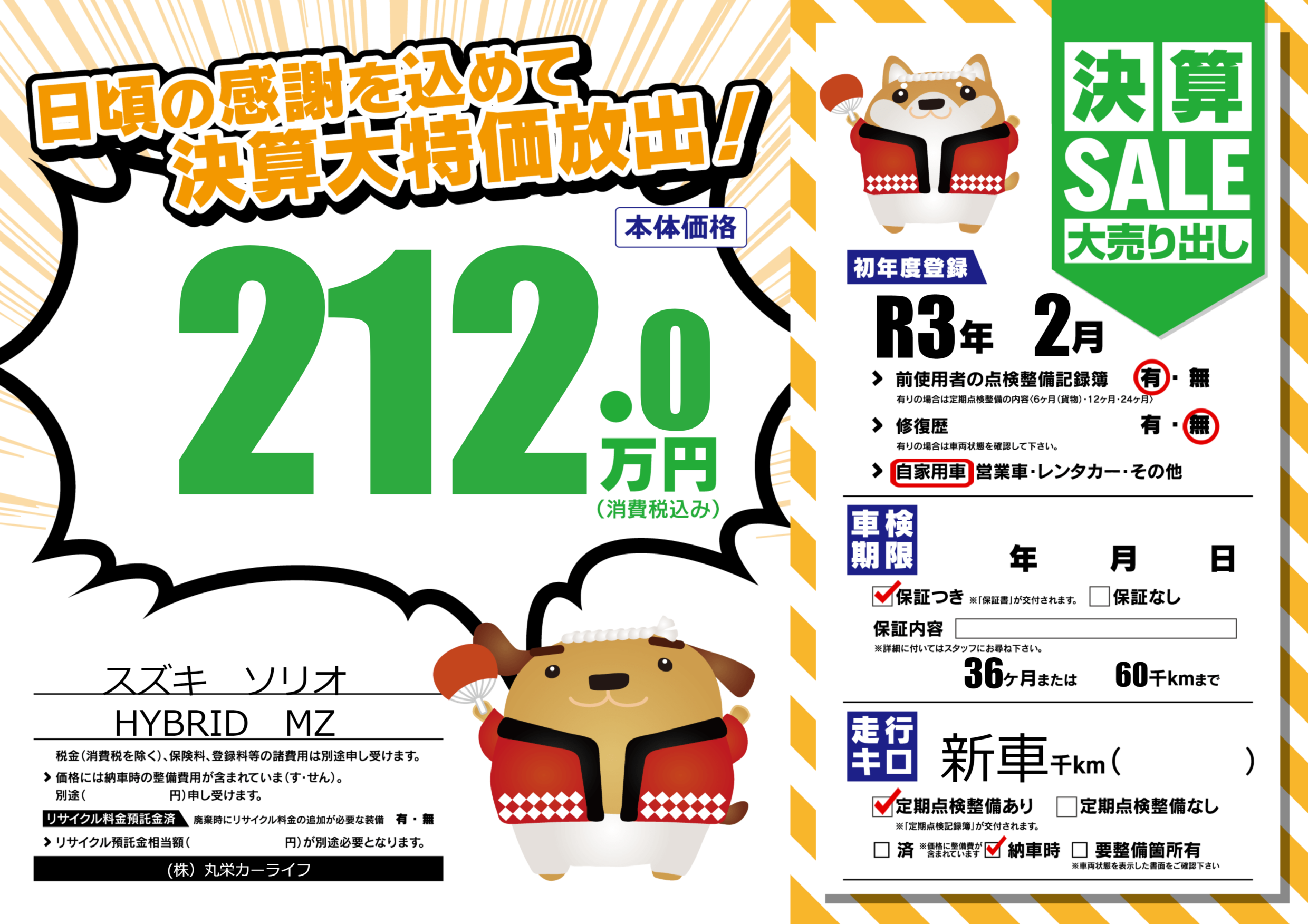 | 定期点検整備 | 定期点検整備あり 納車時あり | ||