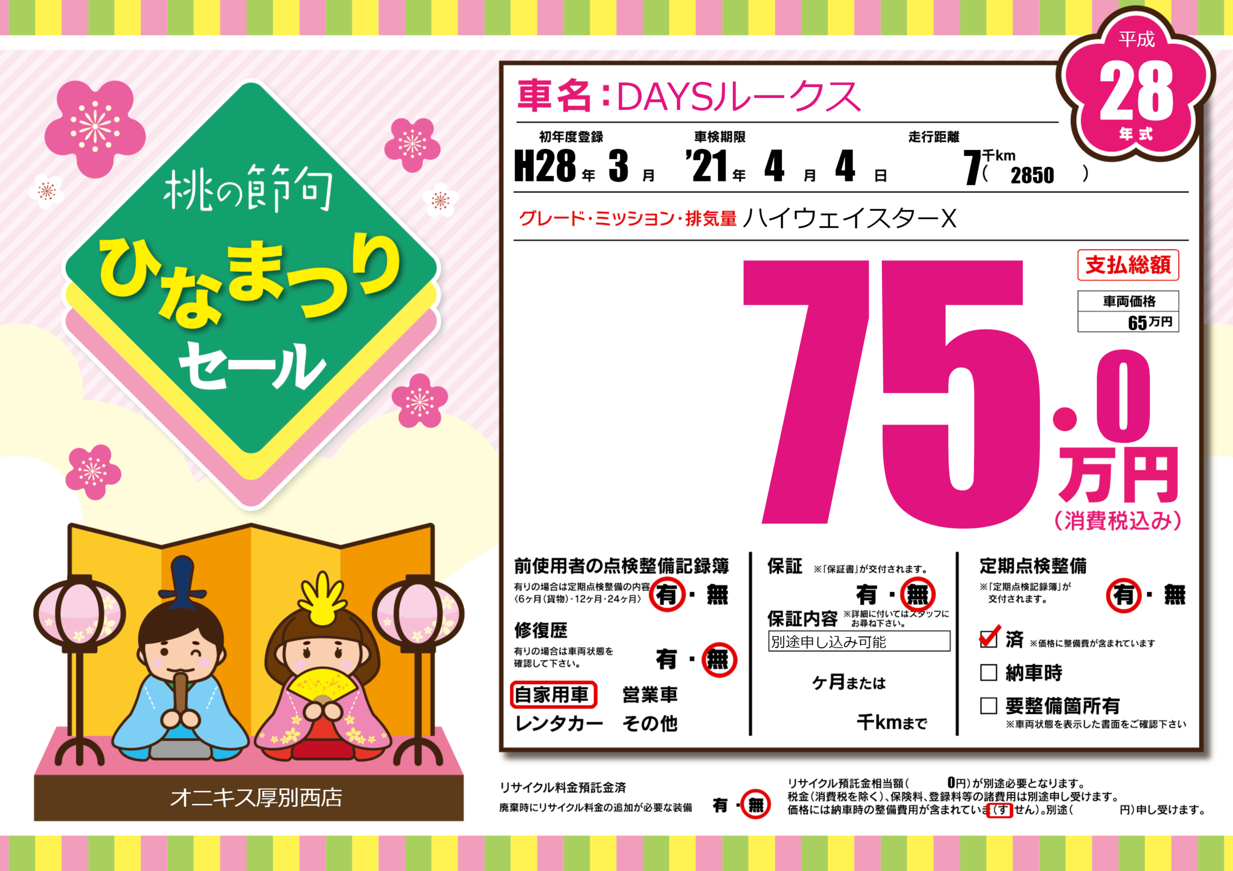 | 定期点検整備 | 定期点検整備あり 定期点検整備済み | ||