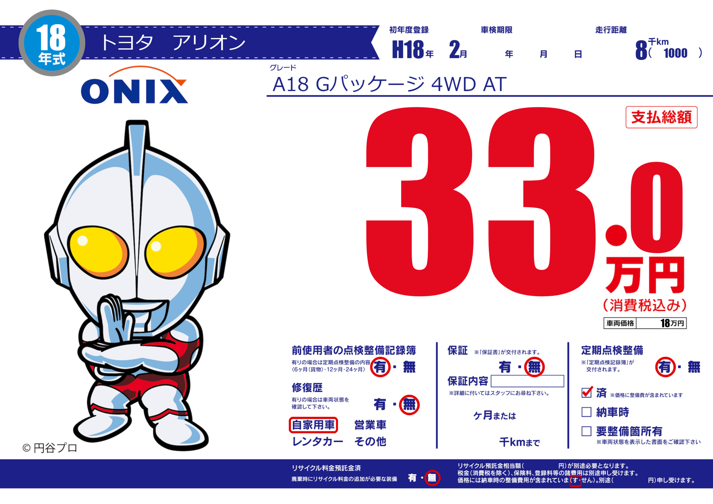 | 定期点検整備 | 定期点検整備あり 定期点検整備済み | ||