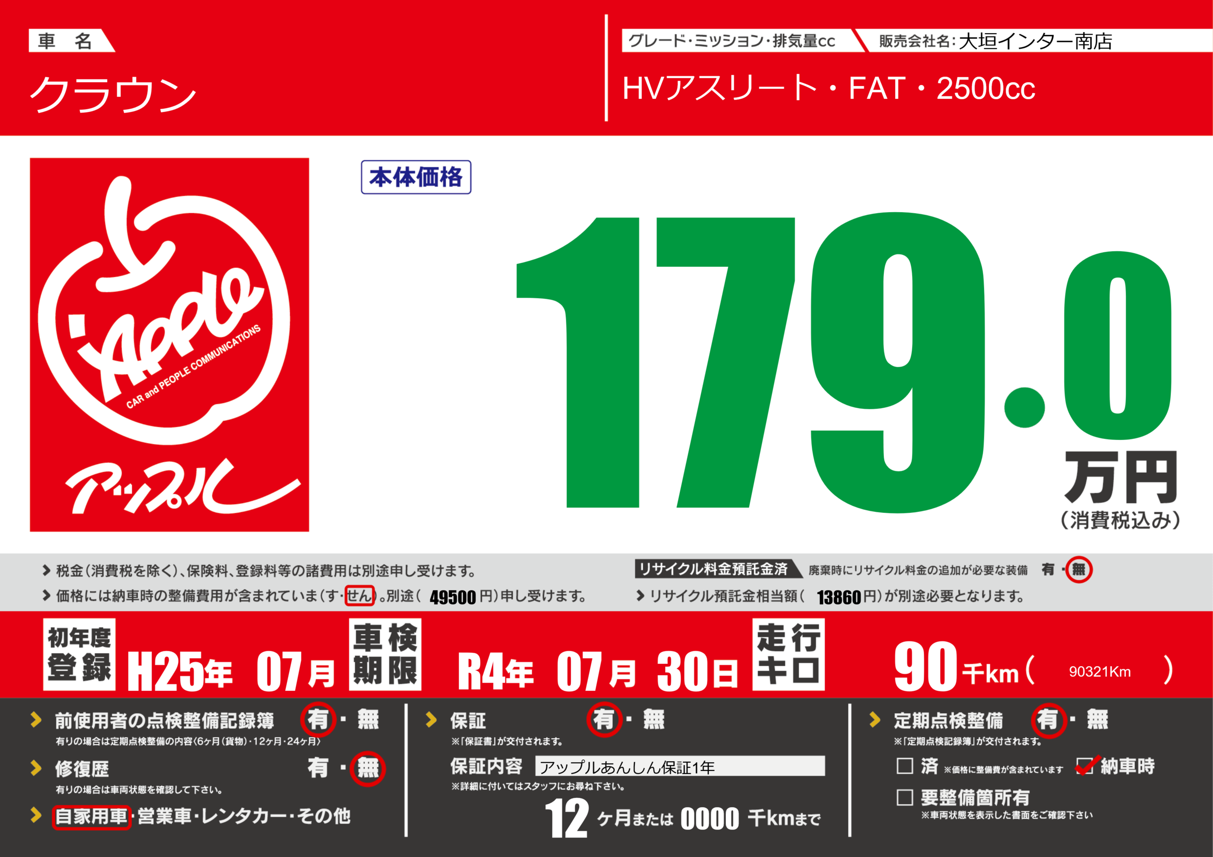 | 車名 | クラウン | グレード ミッション 排気量 |