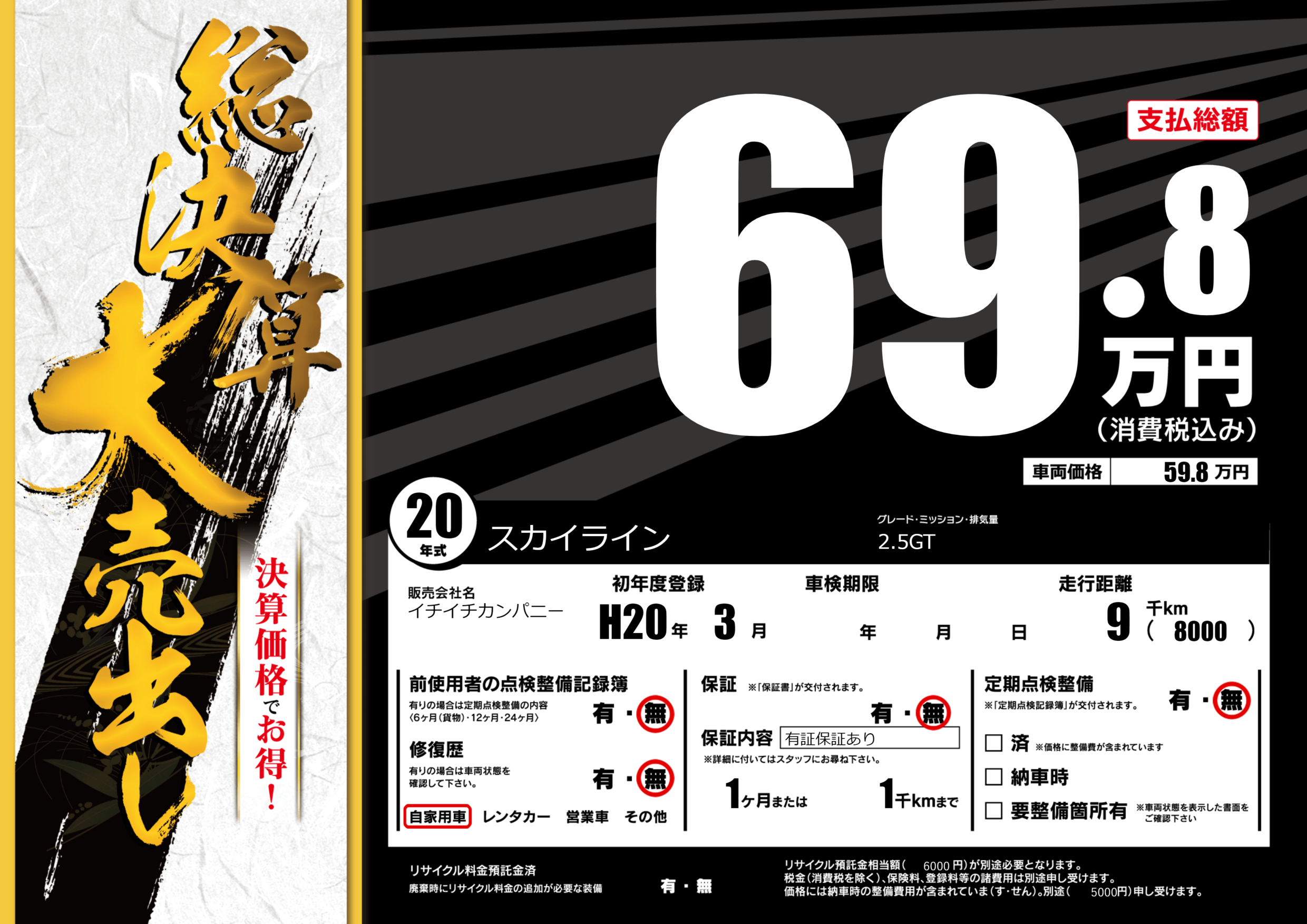 | 車名 | スカイライン | グレード ミッション 排気量 |