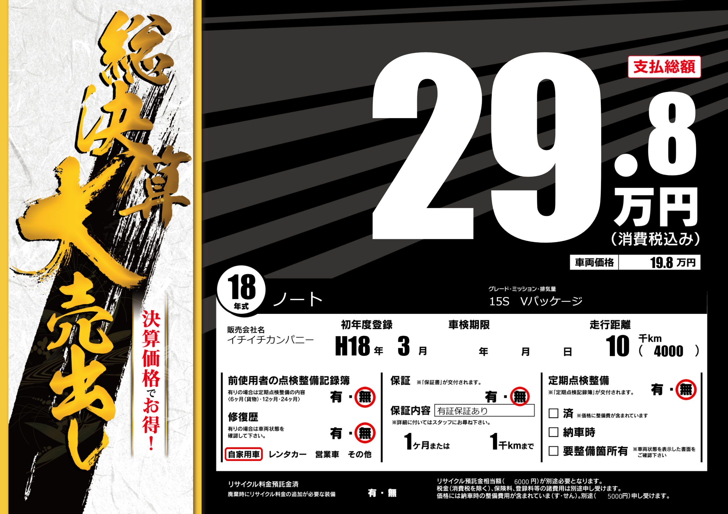 | 走行キロ | 1万km | 初年度登録 | H18年3月 |