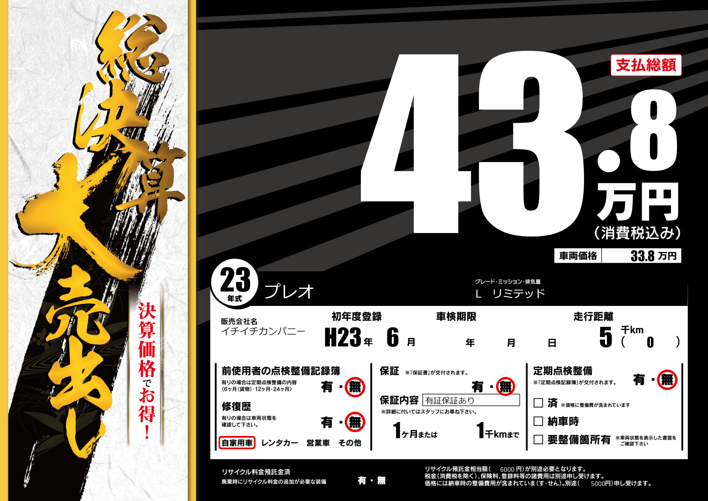 | 車名 | プレオ | グレード ミッション 排気量 |