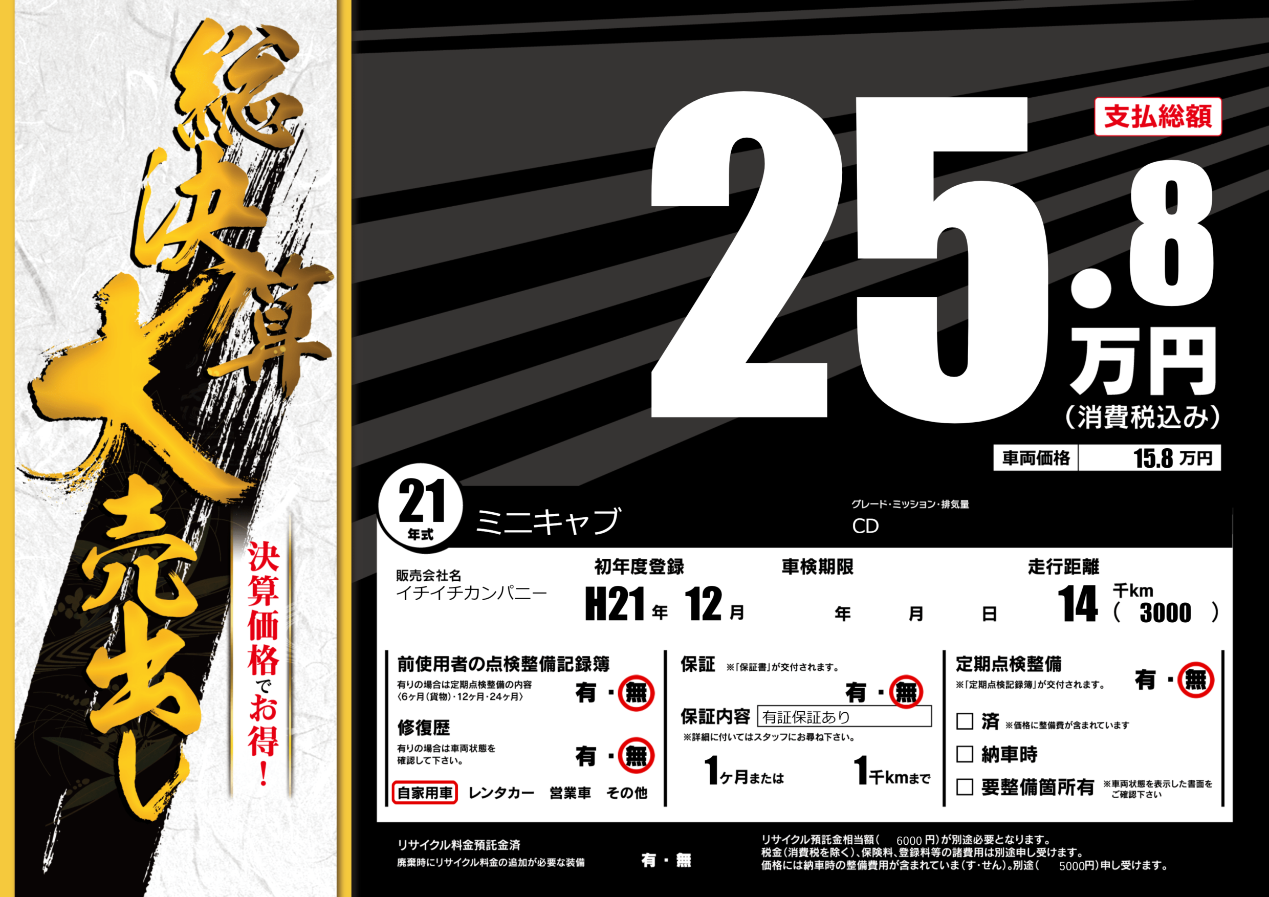| 車名 | ミニキャブ | グレード ミッション 排気量 |