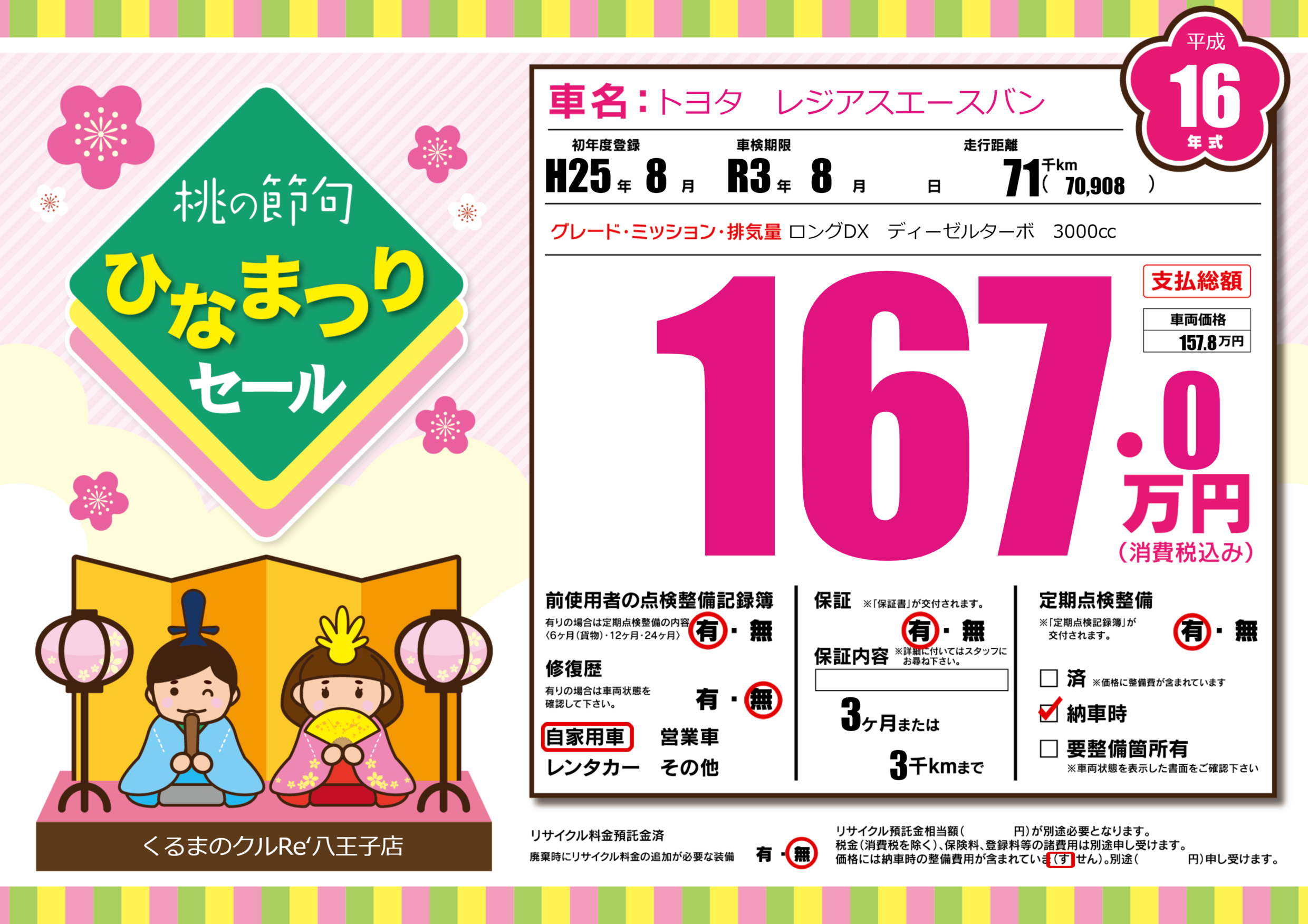 | 定期点検整備 | 定期点検整備あり 納車時あり | ||