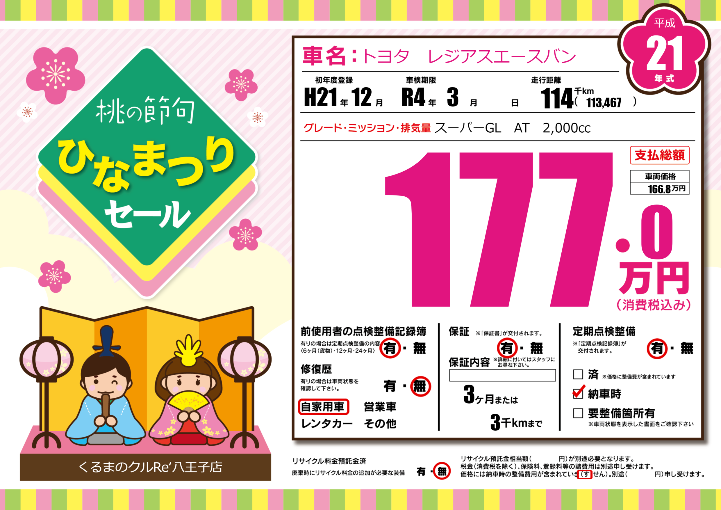 | 定期点検整備 | 定期点検整備あり 納車時あり | ||