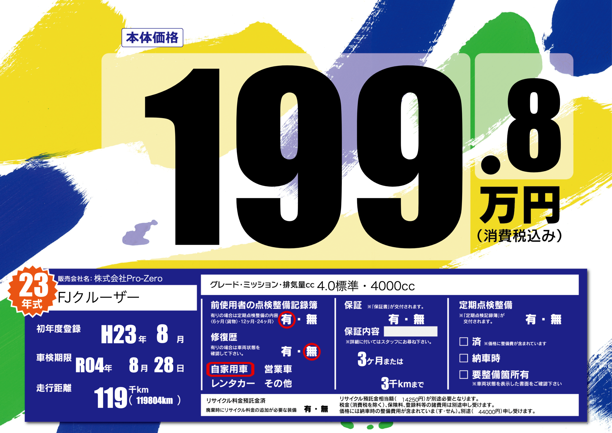 | 走行キロ | 11.9万km | 初年度登録 | H23年8月 |