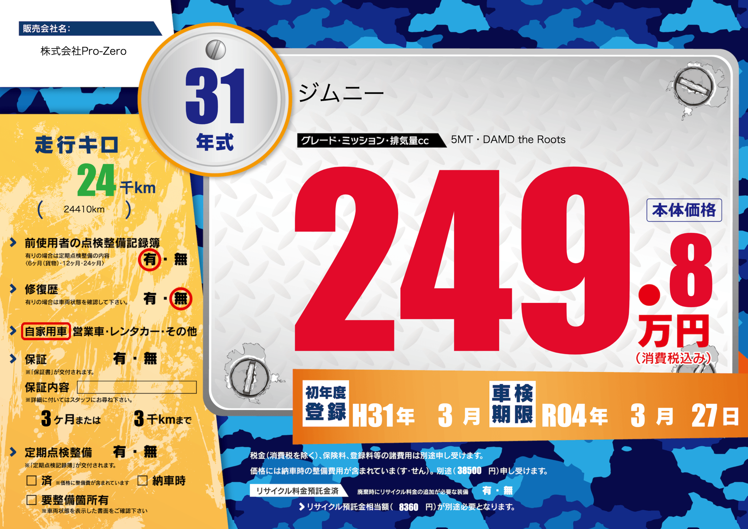 | 車検制限 | R04年 3月 27日 | ||