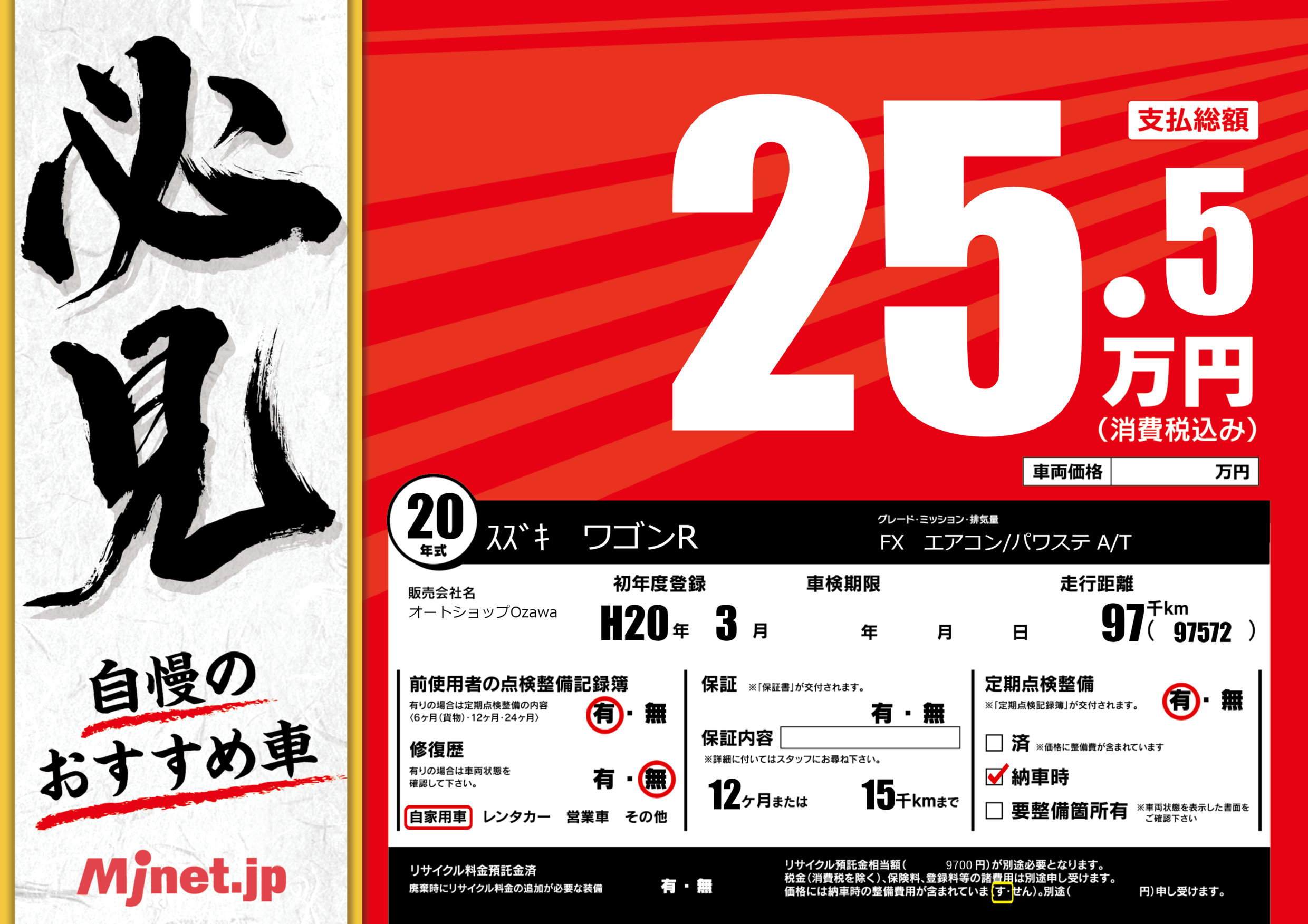 | 車名 | スズキ ワゴンR | グレード ミッション 排気量 |