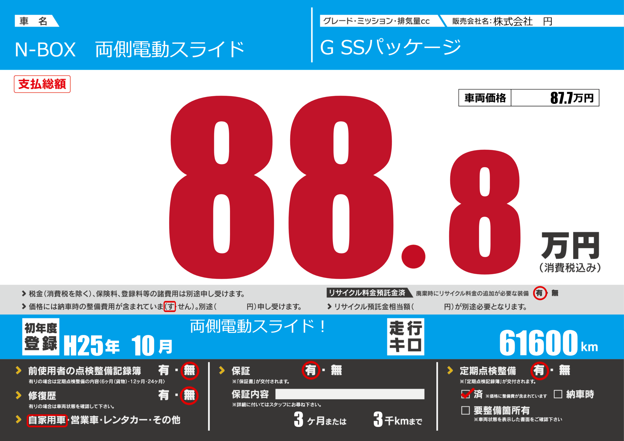 | 定期点検整備 | 定期点検整備あり 定期点検整備済み | ||