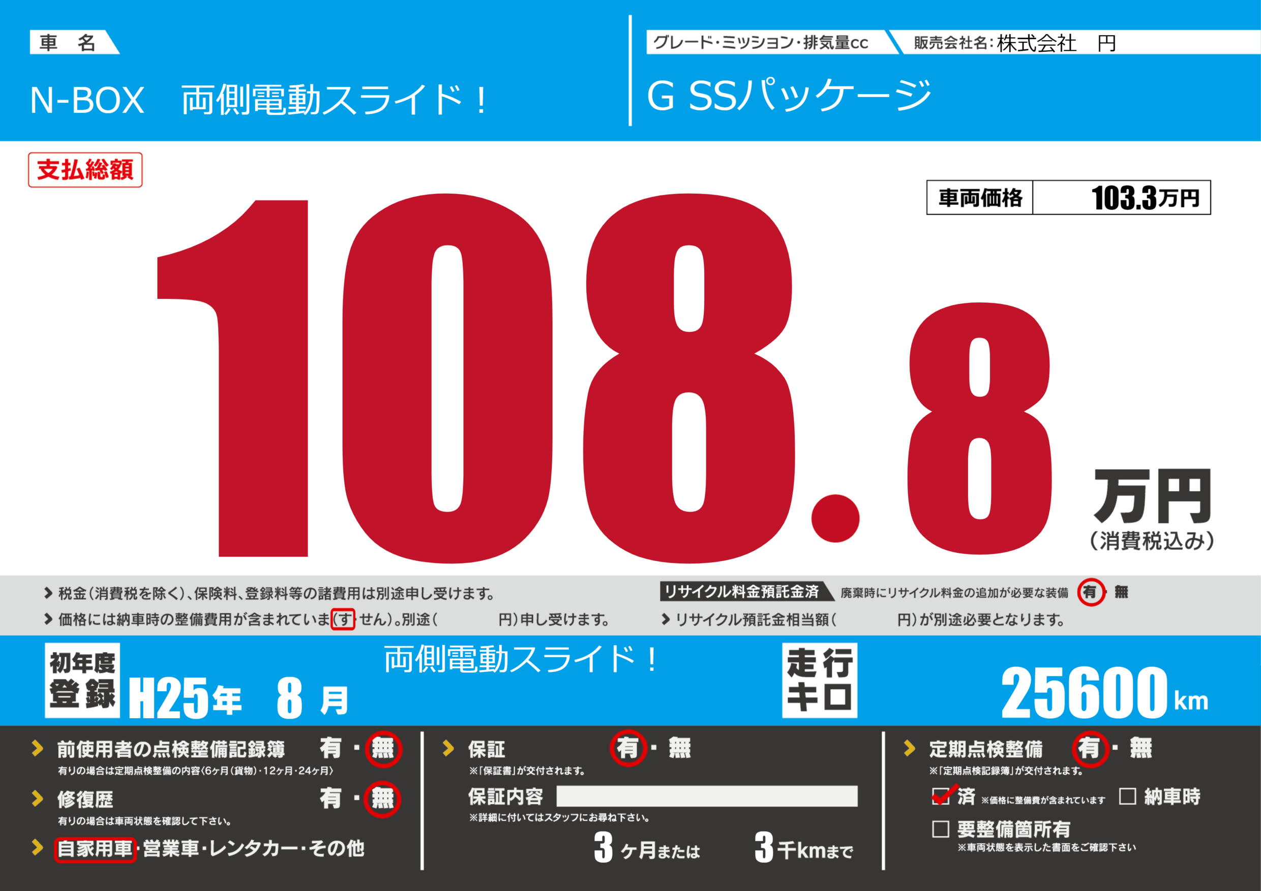 | 定期点検整備 | 定期点検整備あり 定期点検整備済み | ||