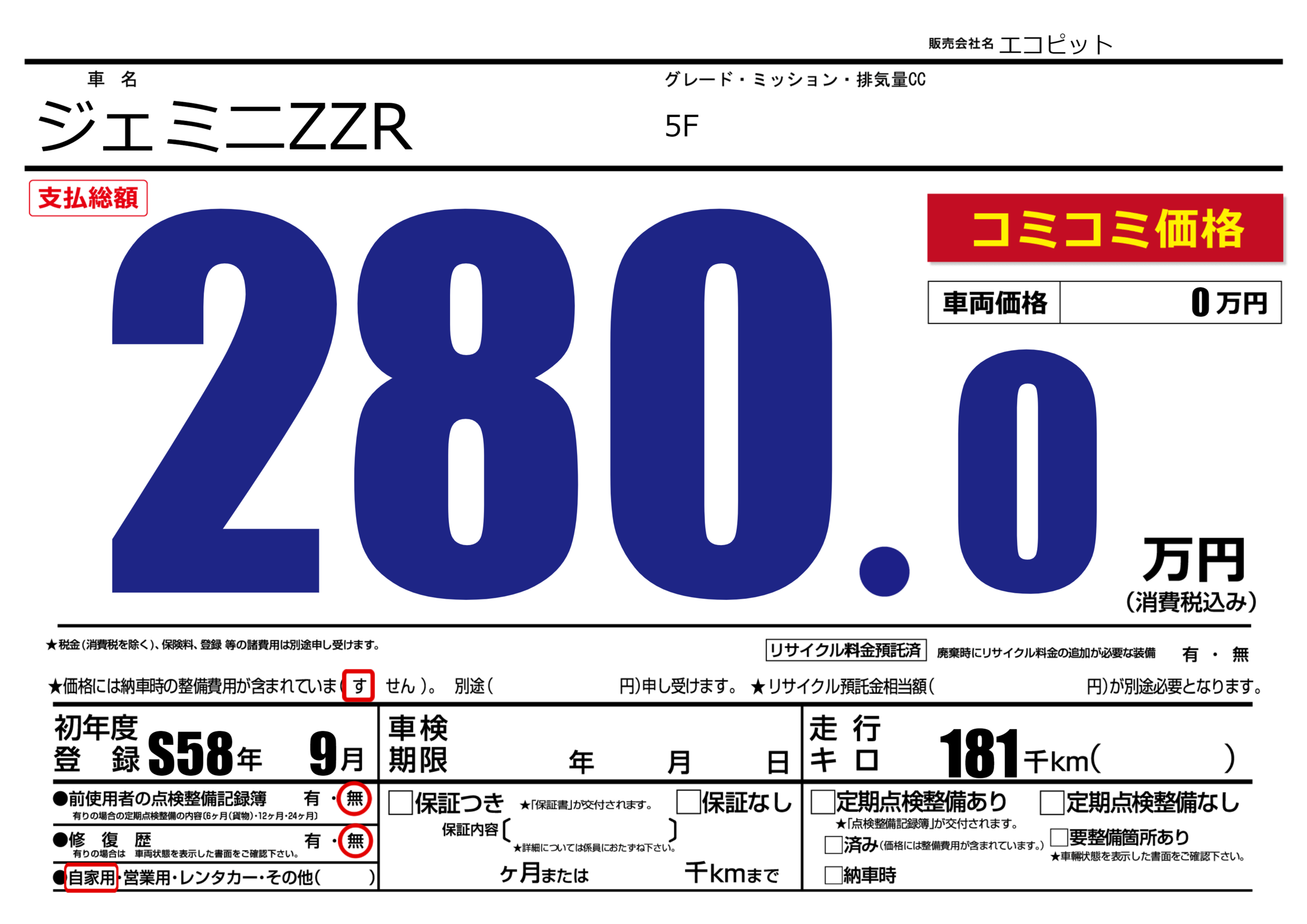 | 車名 | ジェミニZZR | グレード ミッション 排気量 |