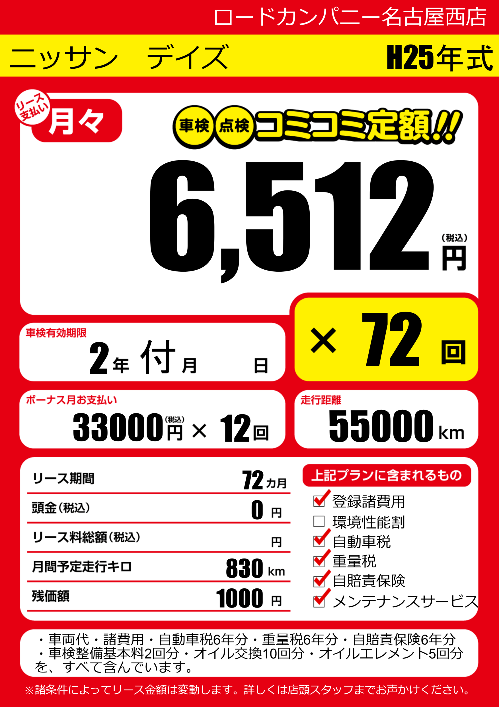 | 車名 | ニッサン デイズ | グレード ミッション 排気量 |
