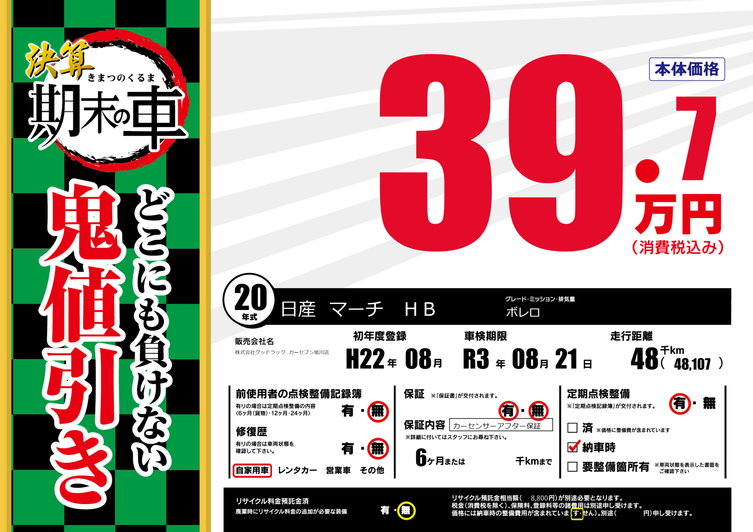 | 定期点検整備 | 定期点検整備あり 納車時あり | ||