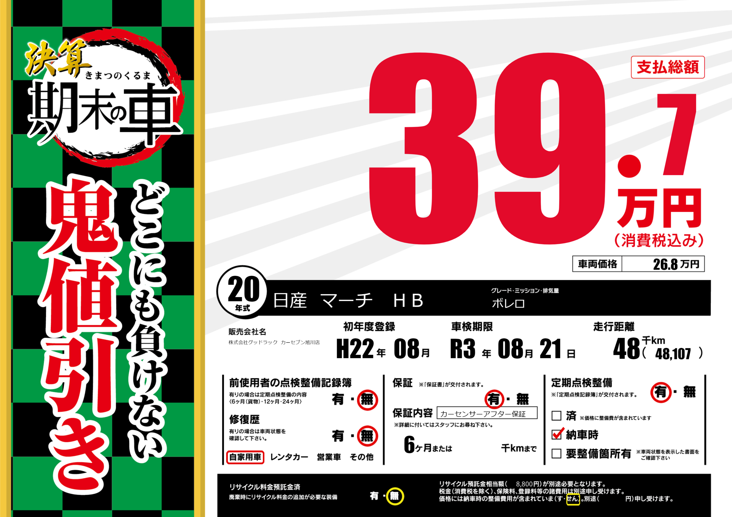 | 車名 | 日産 マーチ HB | グレード ミッション 排気量 |