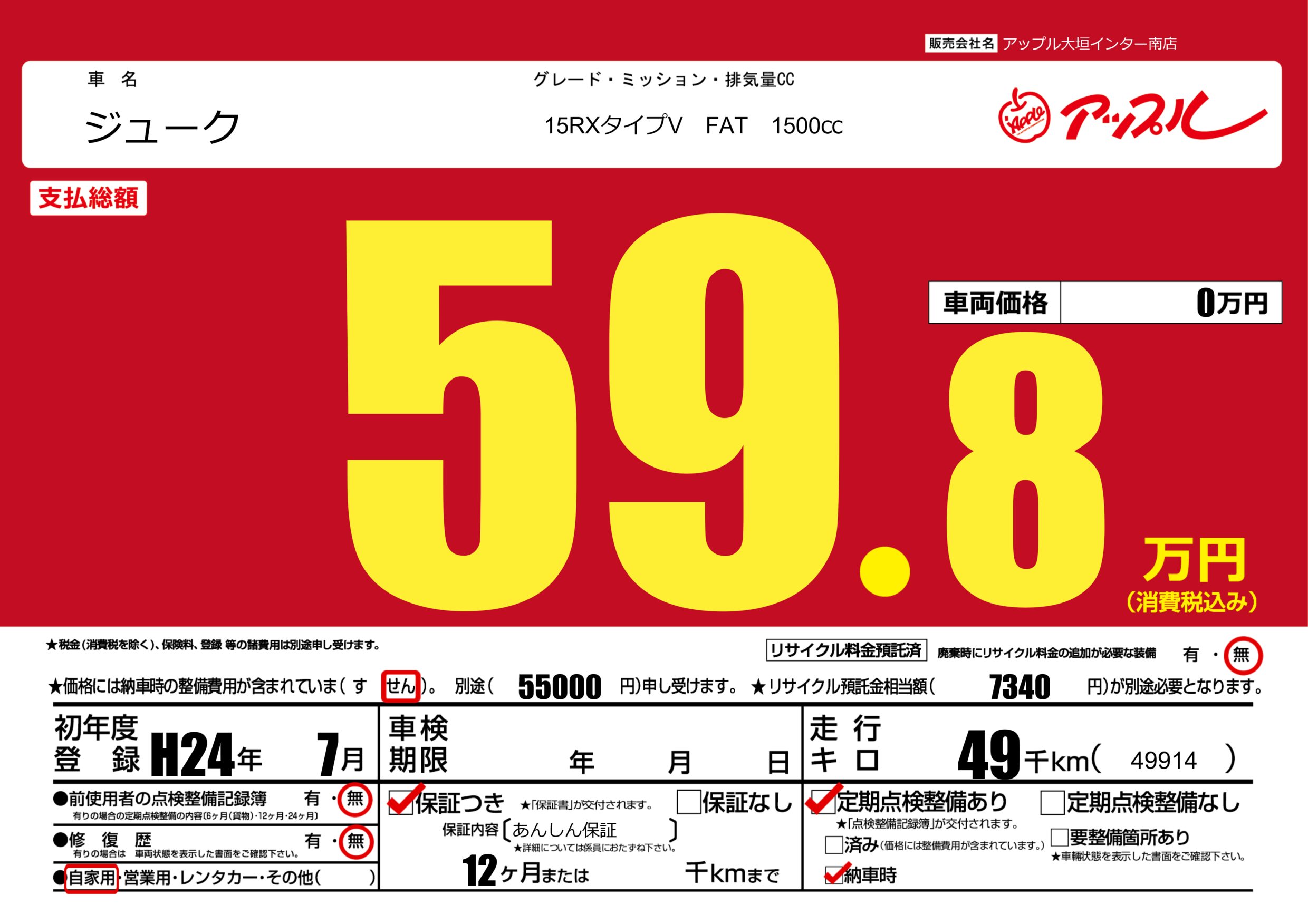 | 走行キロ | 4.9万km | ||