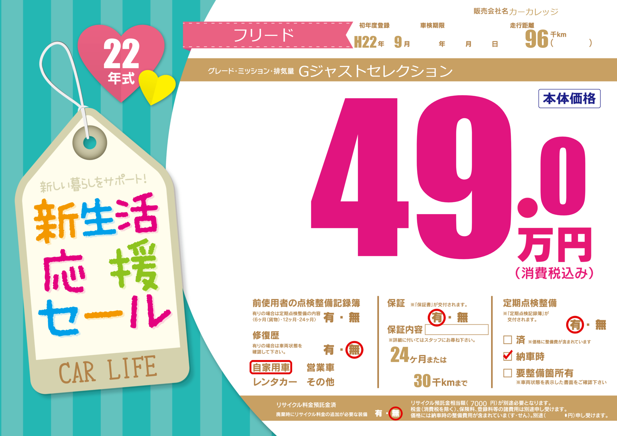 | 定期点検整備 | 定期点検整備あり 納車時あり | ||