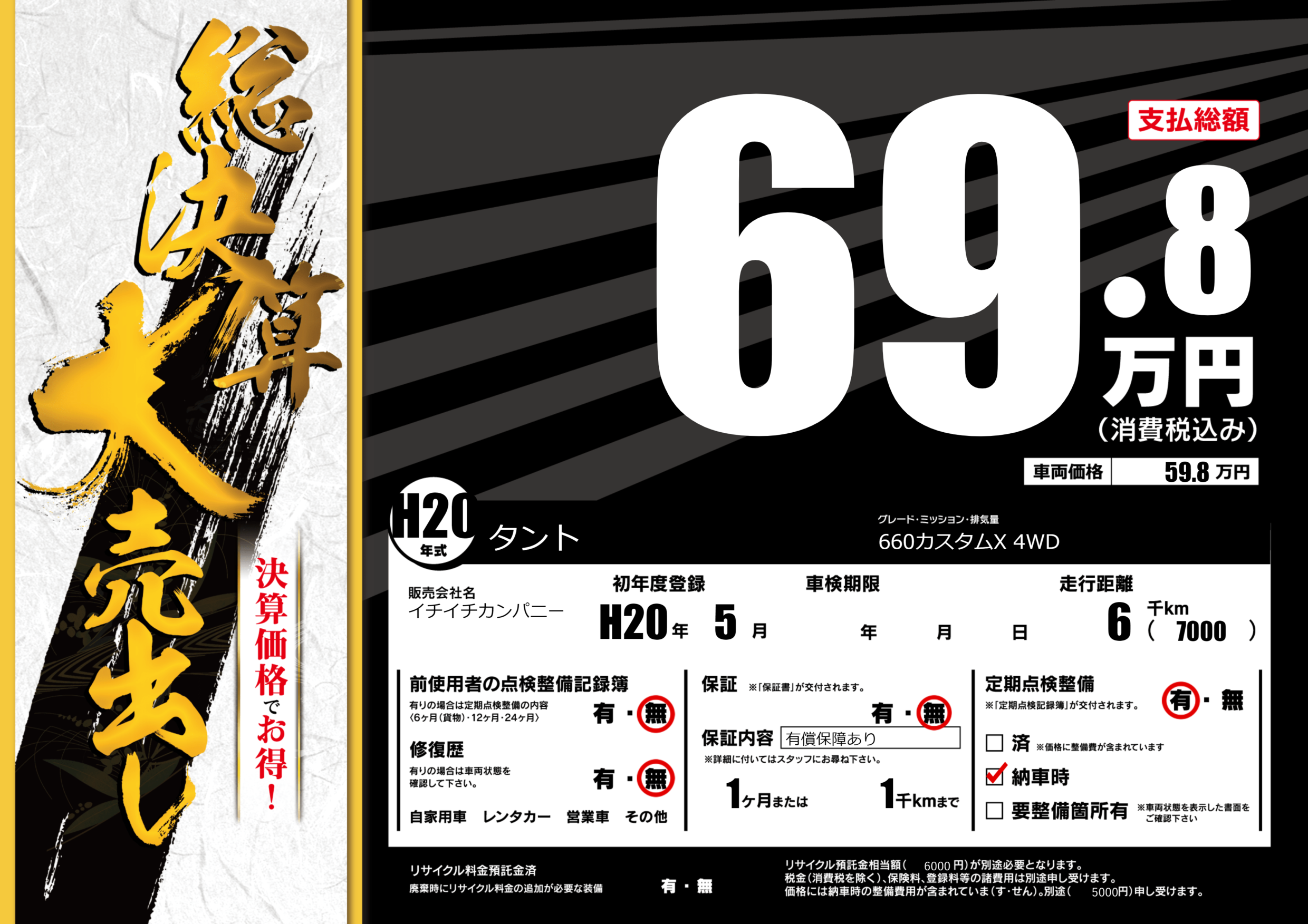 | 定期点検整備 | 定期点検整備あり 納車時あり | ||