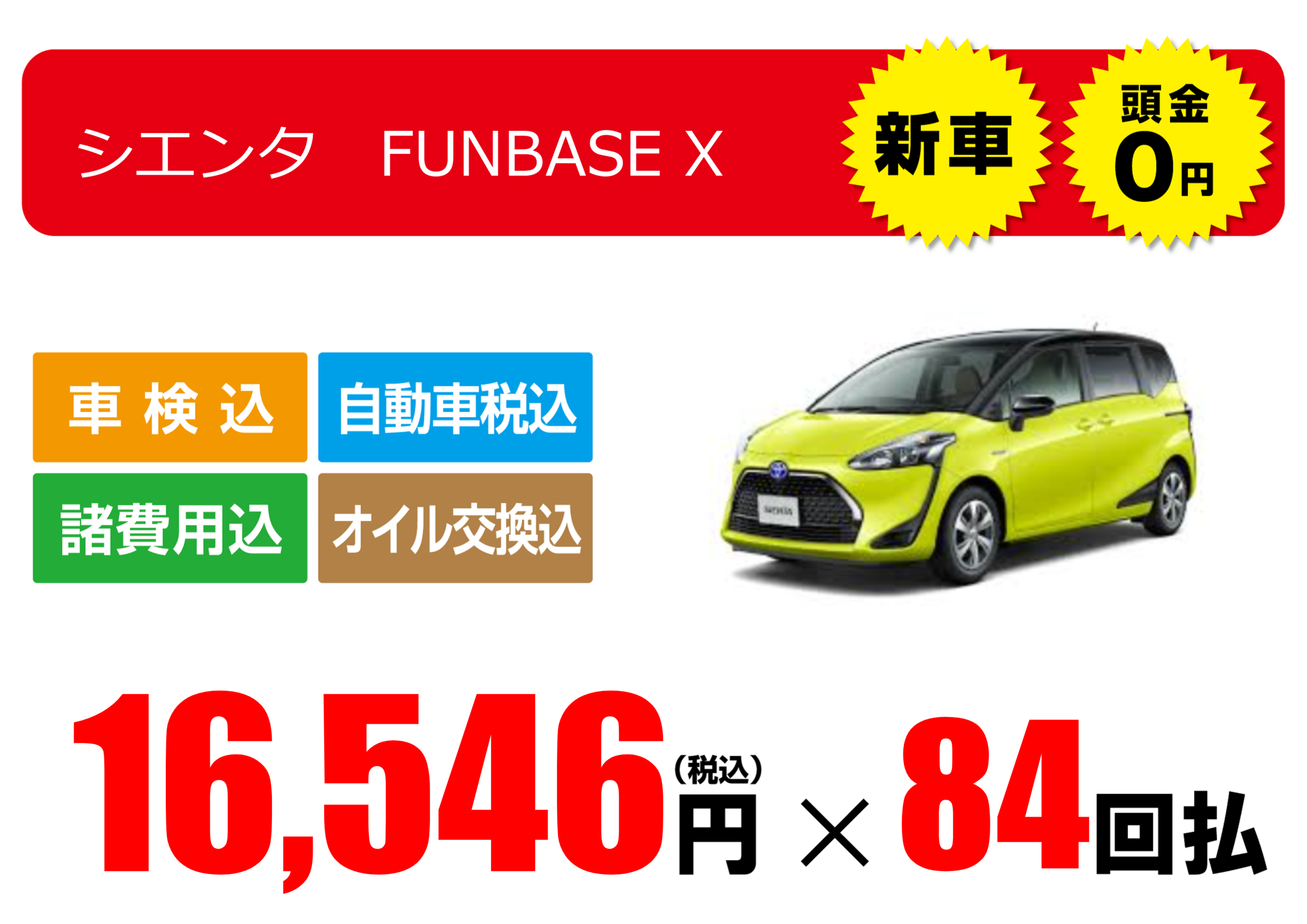 | 車名 | シエンタ FUNBASE X | グレード ミッション 排気量 |