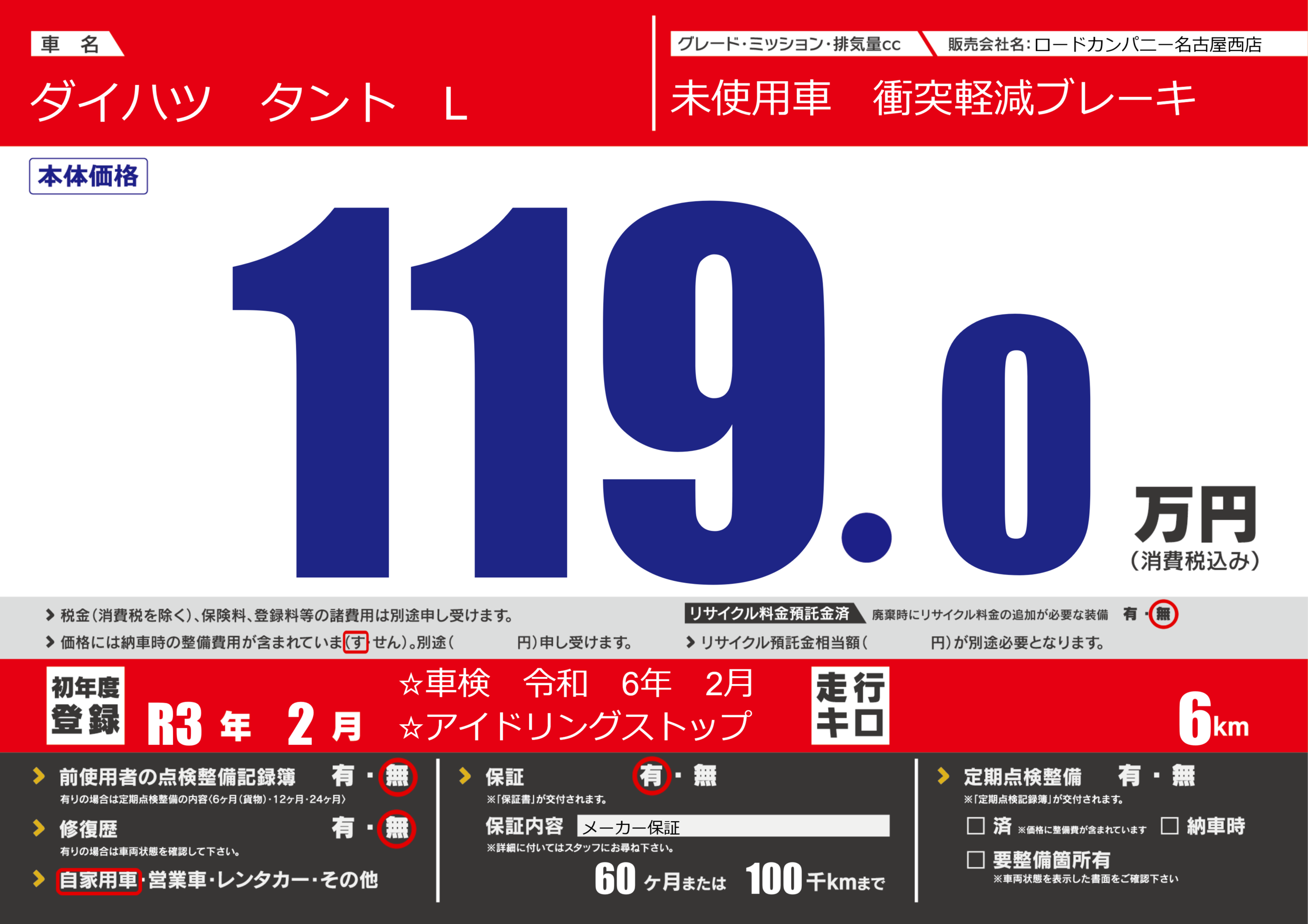 保証付き 保証内容(メーカー保証) 60ヶ月または(100)千kmまで |